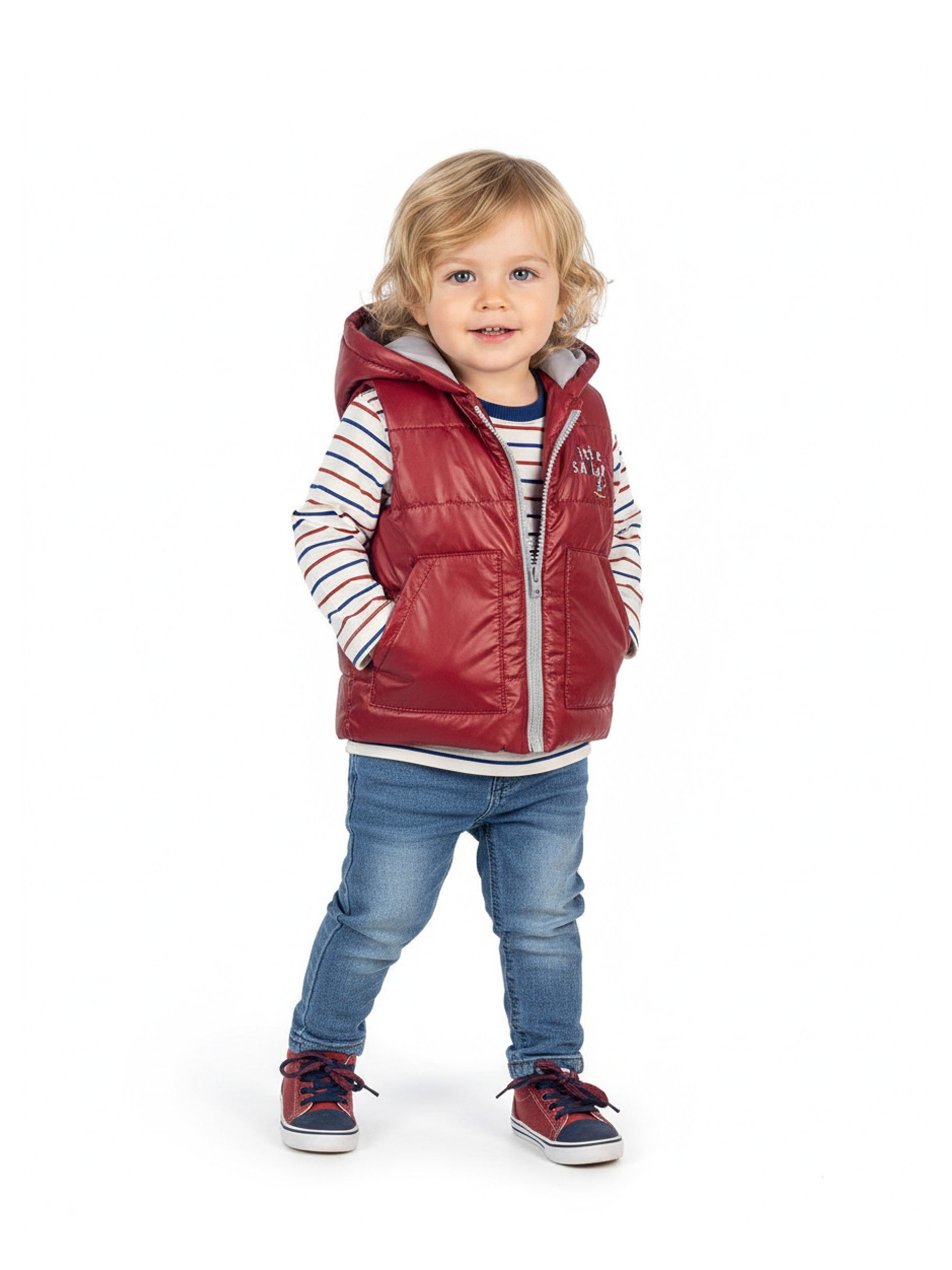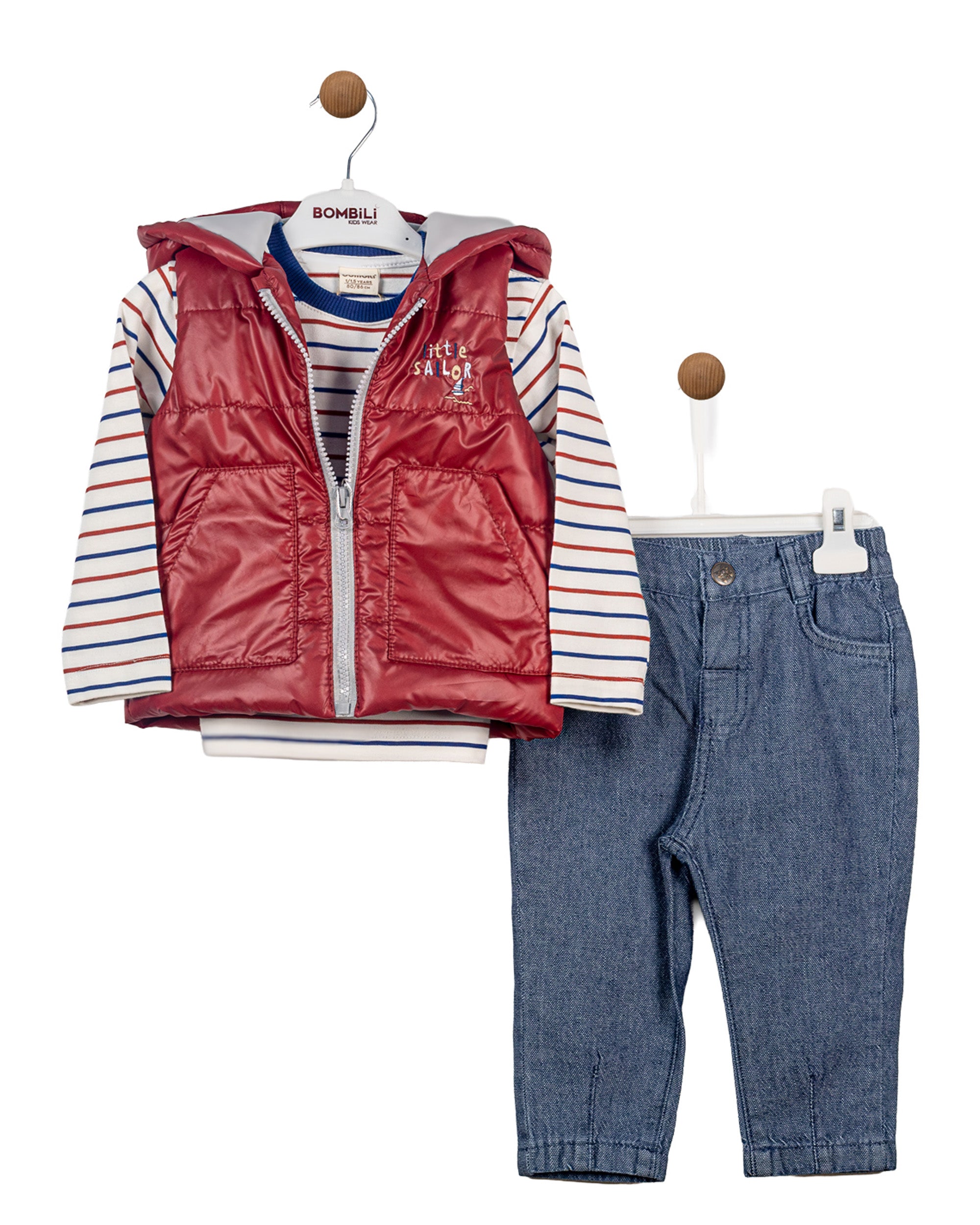 SHIRT:%100 COTTON ,PANTS:%100 COTTON, WAISTCOAT:%100 PES3-piece set: puffer vest + long-sleeve top + jeans