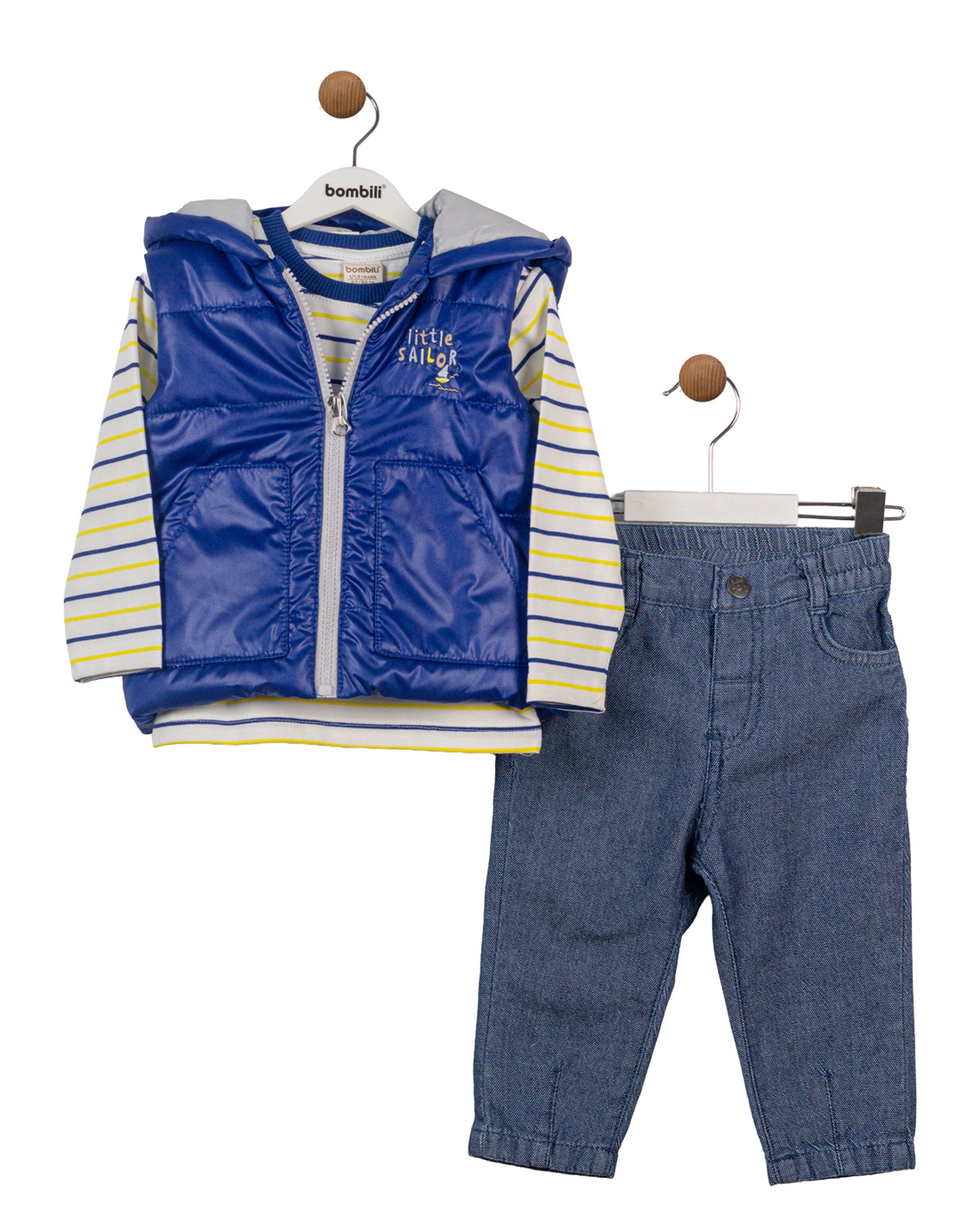 SHIRT:%100 COTTON ,PANTS:%100 COTTON, WAISTCOAT:%100 PES3-piece set: puffer vest + long-sleeve top + jeans