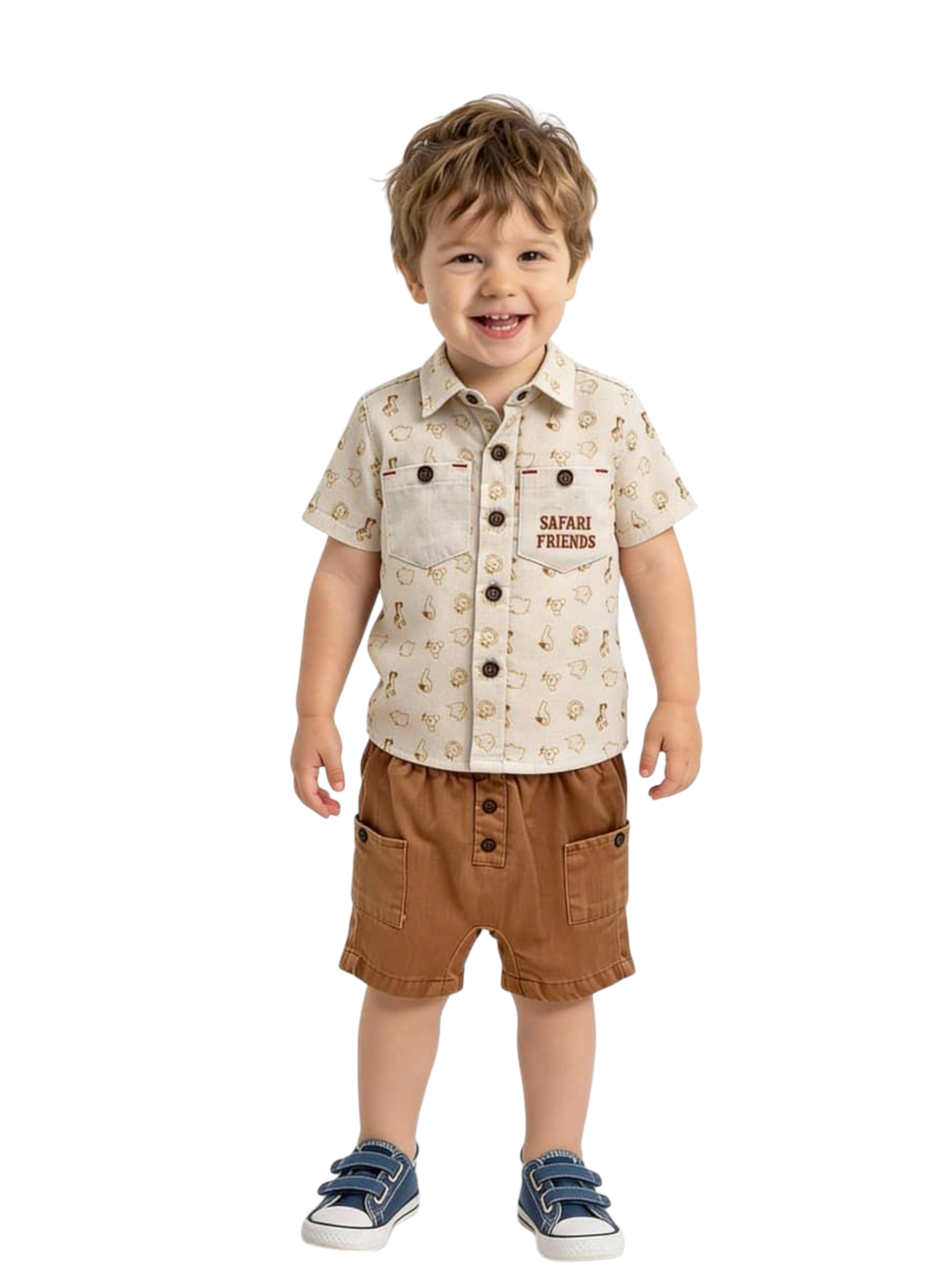 النوع: طقم من قطعتين (قميص نصف كم + شورت بخصر مطاطي)