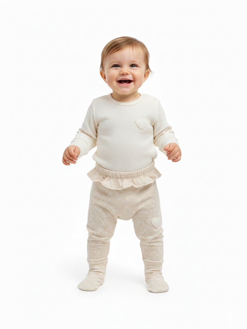 Baby Girls Tiny Hearts 2-Piece Baby Set-Beige - 1-3 months تم طلبه مسبقًا وسيتم شحنه بمجرد عودته إلى المخزون.
