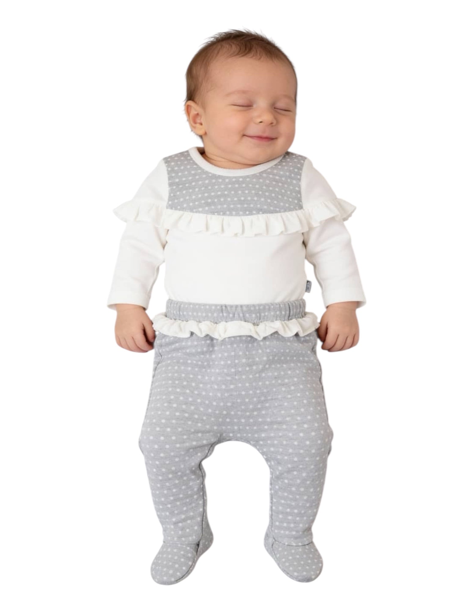 طقم لونا الوردي الفاتح للأطفال، المكون من قطعتين، يتميز بجزء علوي مزين بالكشكشة وجزء سفلي مزود بقاعدة. مصنوع من قطن ١٠٠٪، لطيف على بشرة طفلك الرقيقة. مريح وأنيق، مثالي للارتداء اليومي أو المناسبات الخاصة. صنع في تركيا.