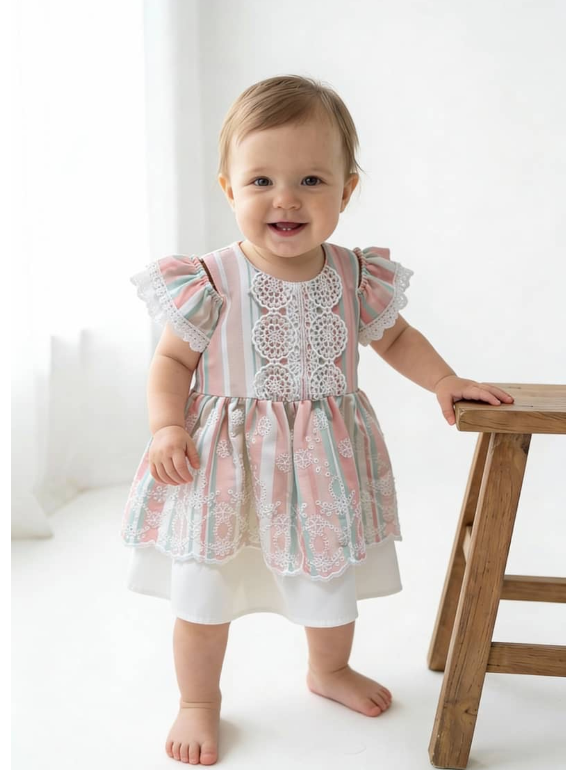 فستان لولي بخطوط الباستيل - سلمون - 9 ملايين تم طلبه مسبقًا وسيتم شحنه بمجرد عودته إلى المخزون.