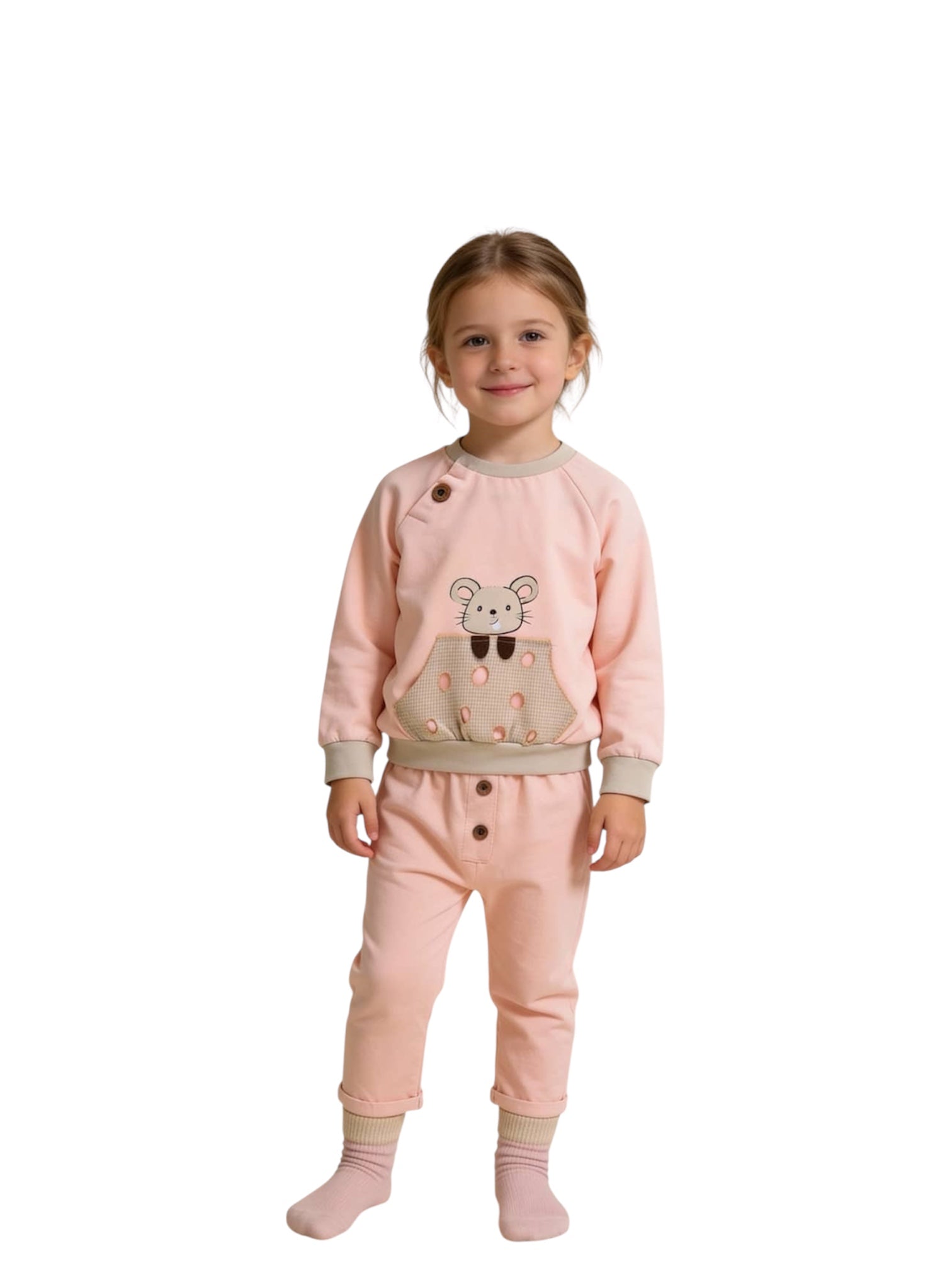 طقم جيرسي مكون من قطعتين لطفلة.