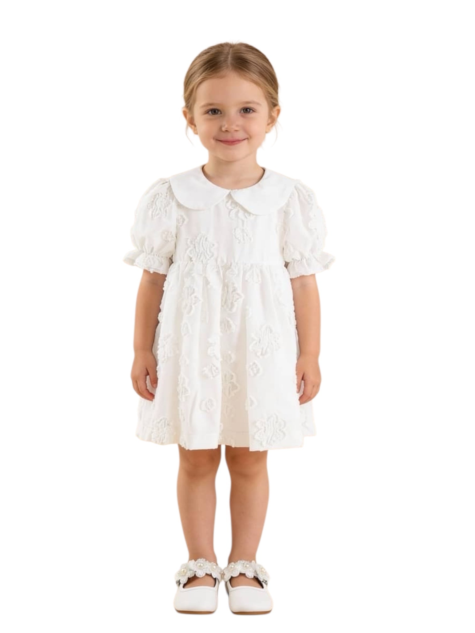 Floral Chiffon Short Sleeve Dress - White - 2Y / White تم طلبه مسبقًا وسيتم شحنه بمجرد عودته إلى المخزون.