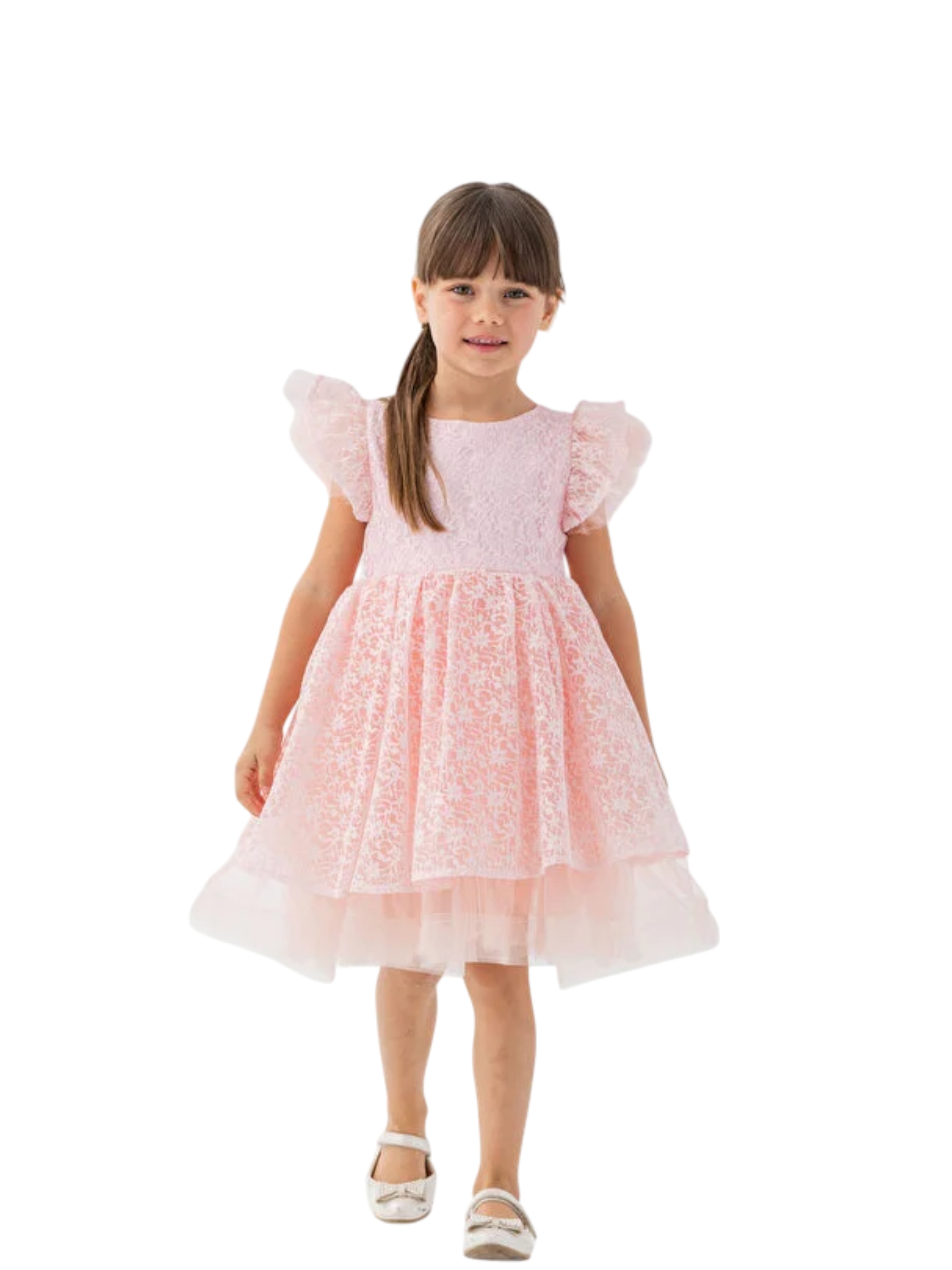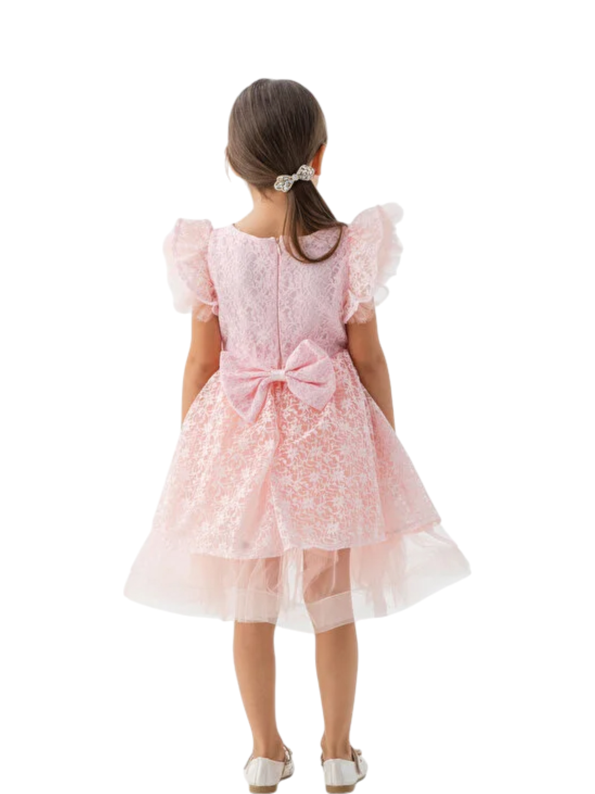 فستان حفلات بتفاصيل فيونكة من الدانتيل الوردي - 3Y تم طلبه مسبقًا وسيتم شحنه بمجرد عودته إلى المخزون.
