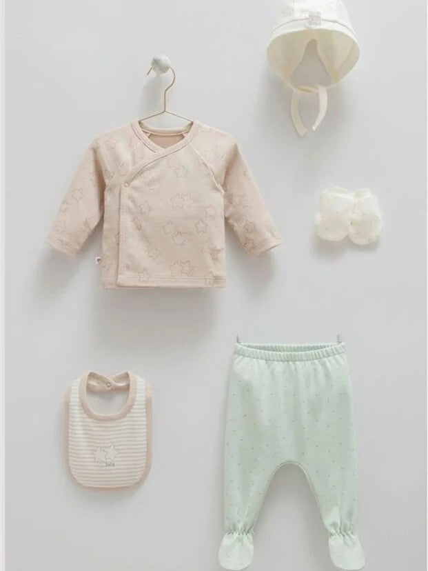 مصنوعة من قطن ١٠٠٪، هذه المجموعة المكونة من خمس قطع تسمح بمرور الهواء، لطيفة على بشرة طفلك الحساسة. عملية للاستخدام اليومي في المنزل، أو الحديقة، أو أثناء السفر. تتميز بنقشة حيوانات لطيفة، محبوبة من قِبل محبي الدببة الصغيرة.