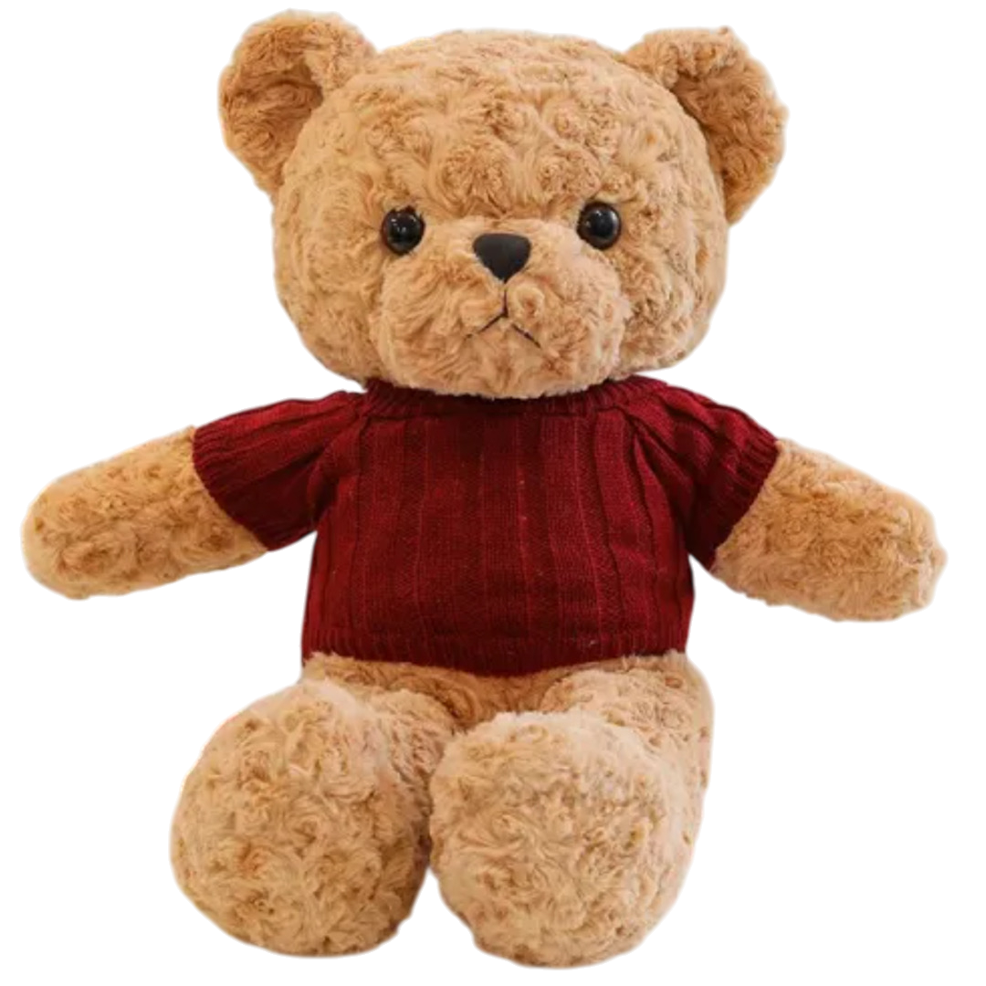 بفرائه فائق النعومة، يضمن لك عناقًا مريحًا. مستعد للمغامرات بسترته الحمراء الأنيقة، هذا الرفيق الآمن والمتين مثالي لطفلك.