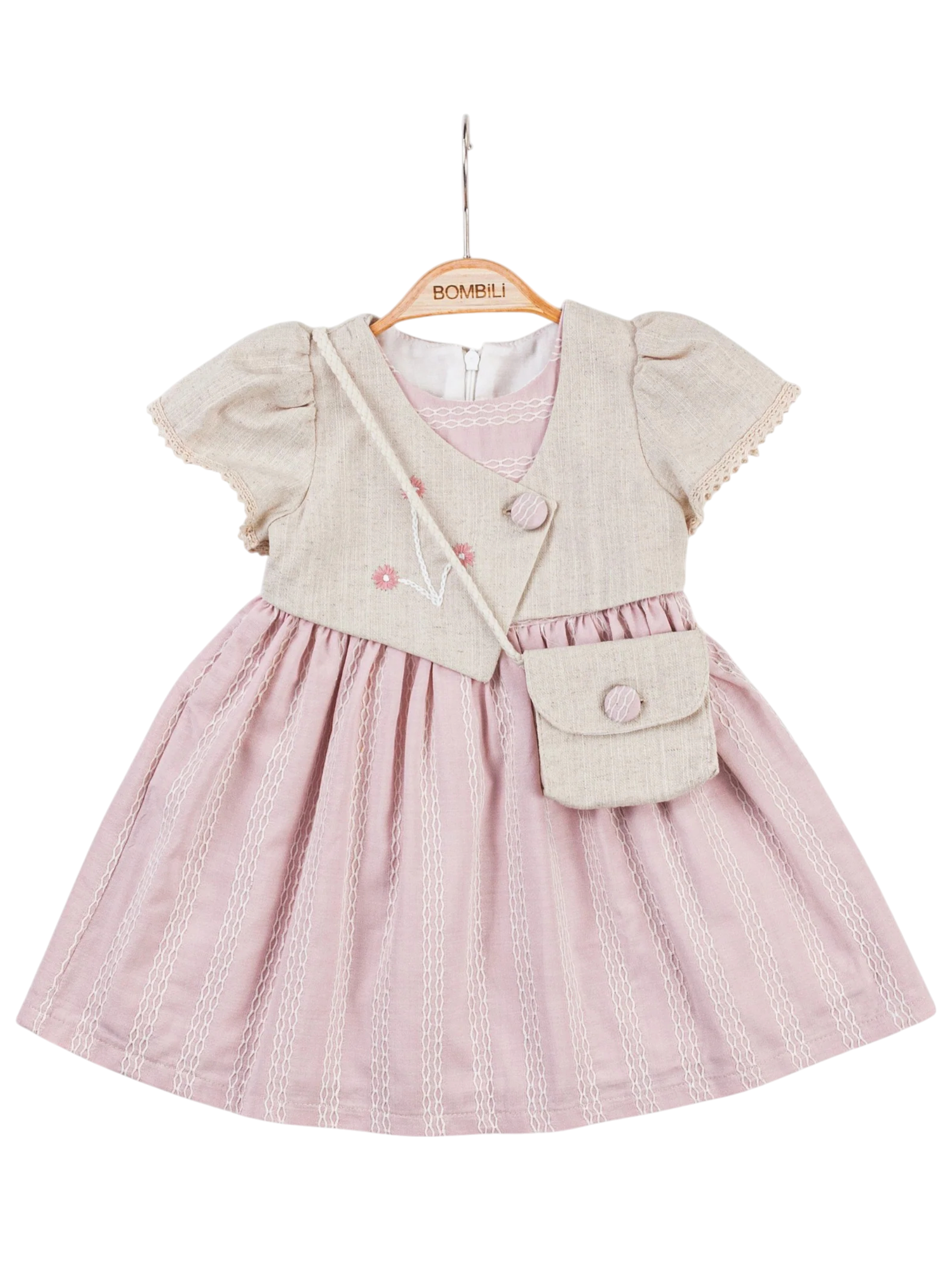 فستان دانتيل مطرز مع صدرية وحقيبة - وردي - 9 ملايين تم طلبه مسبقًا وسيتم شحنه بمجرد عودته إلى المخزون.