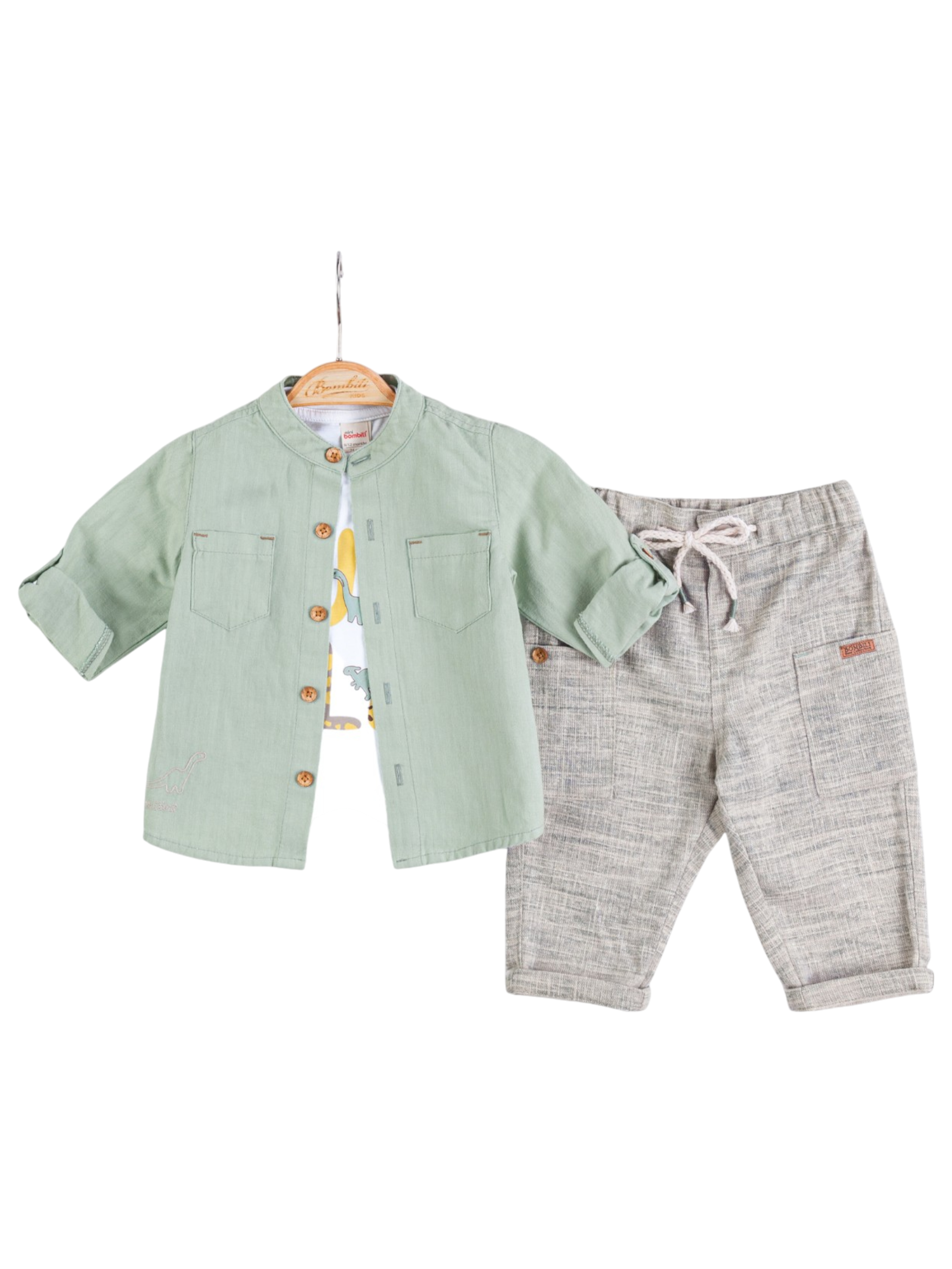 مجموعة من ثلاث قطع من مواليد الموضة. صنع في تركيا. بنطلون من البوليستر والقطن بنسبة 100%.