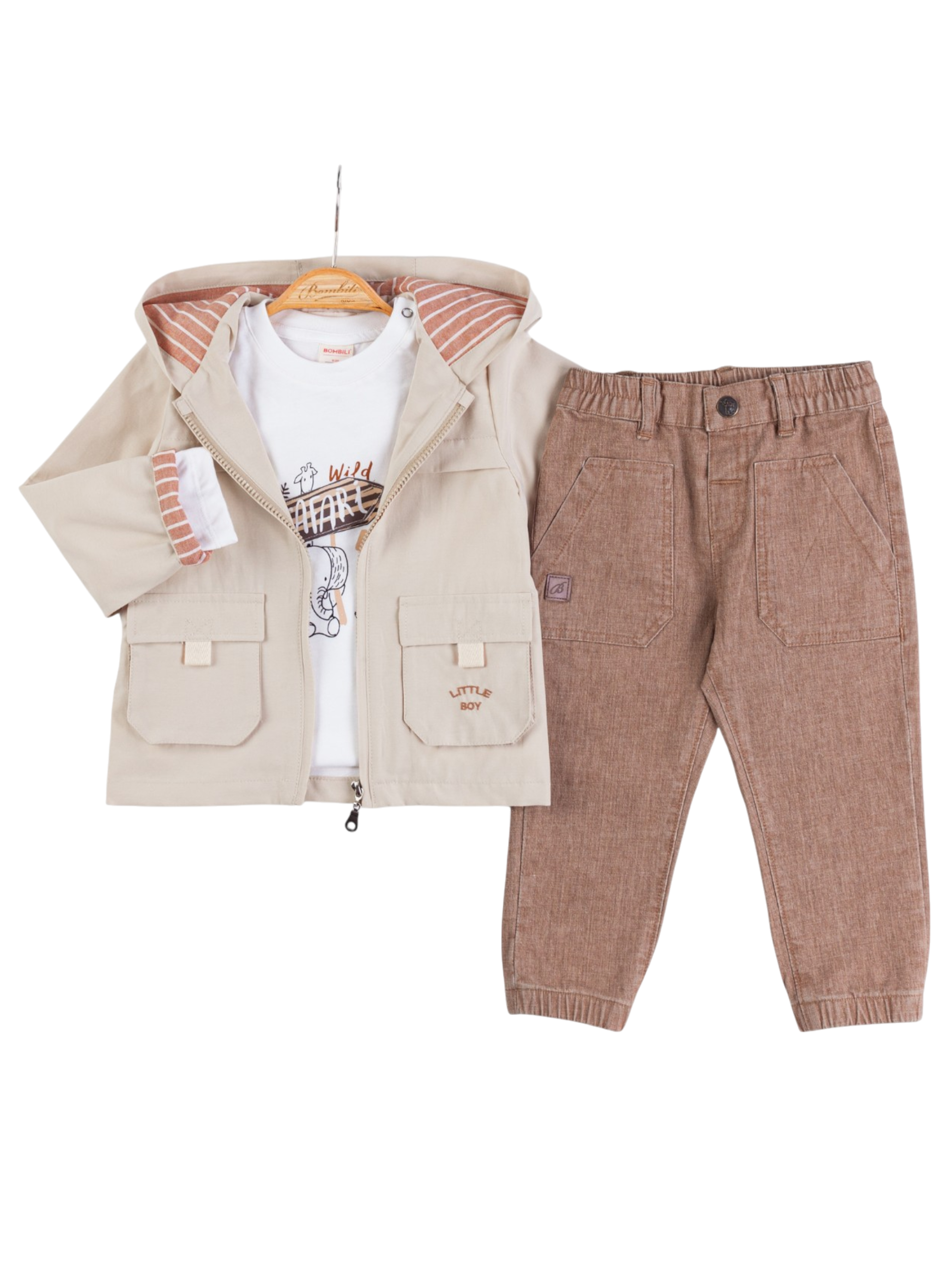 طقم جاكيت بقلنسوة وجينز وقميص من بوبو. صنع في تركيا. الجاكيت من البوليستر والقطن بنسبة 100%