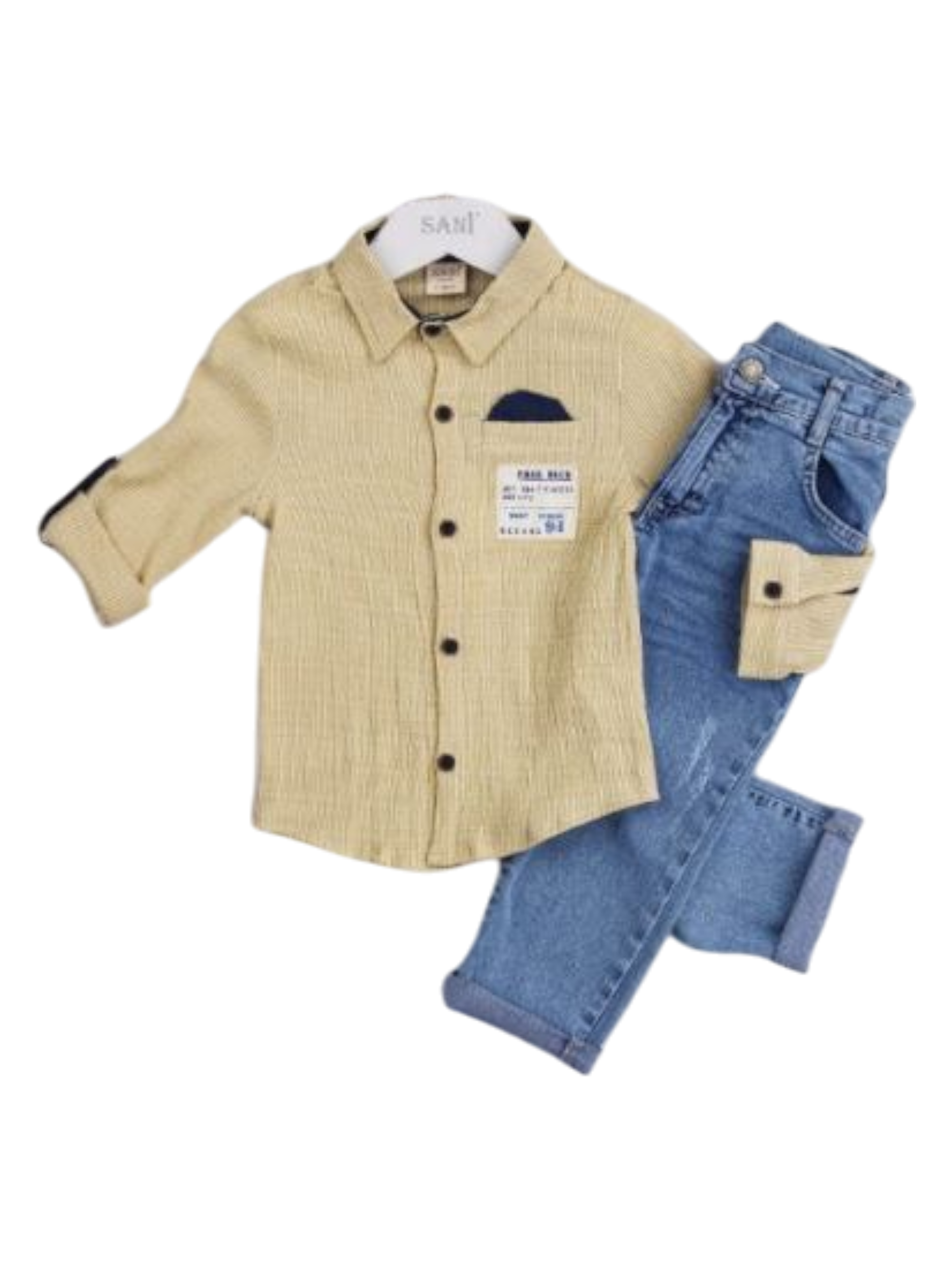 طقم قميص قطني وجينز من سيليو - لاتيه