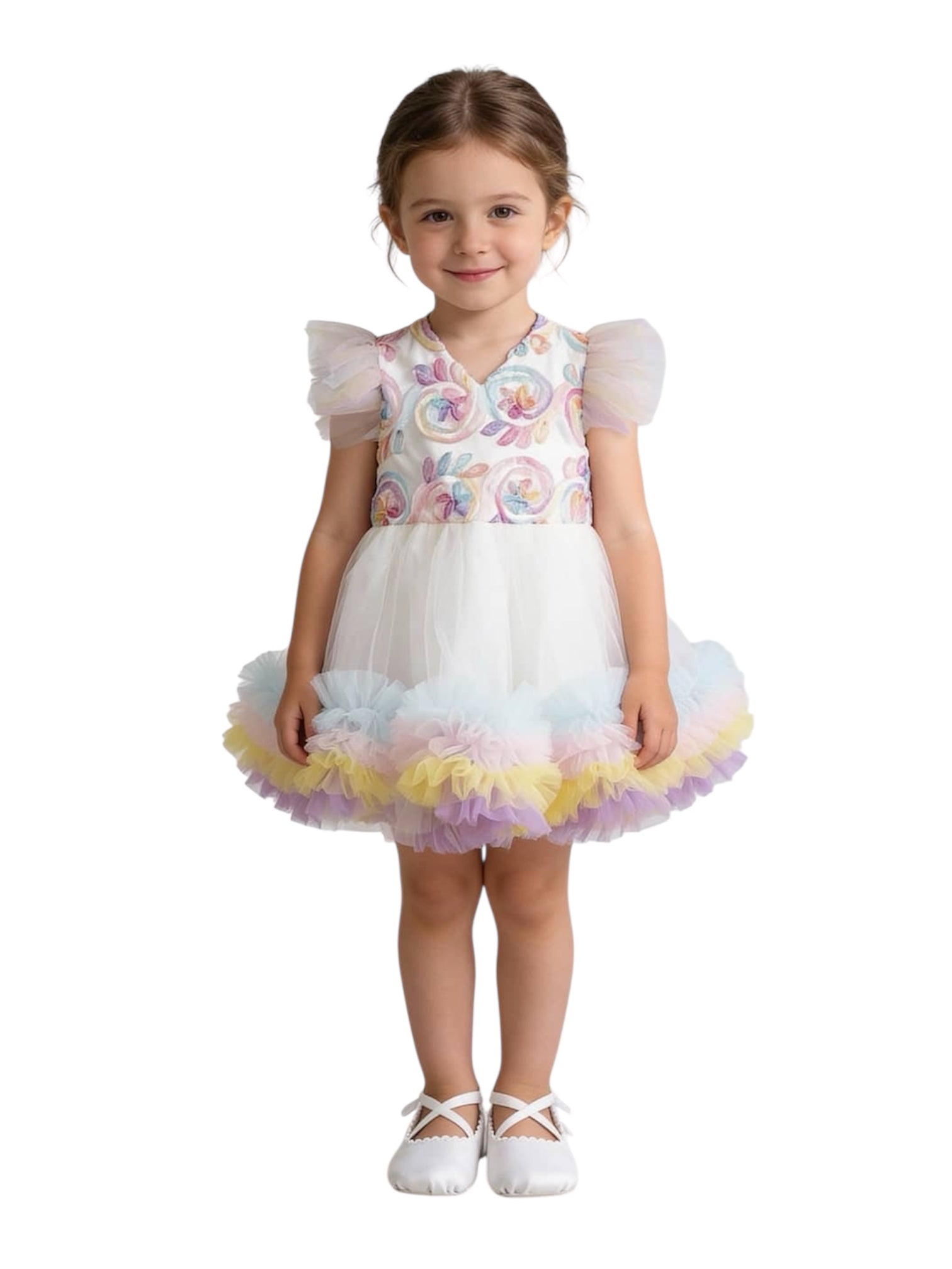 Short sleeve dress offering comfortable freedom of movement. Designed for parties and special occasions, it stands out with its V-neck detail and mixed-pattern tulle texture. Its regular fit and midi length provide a comfortable yet elegant look. Features a zip closure. Fully lined with 100% cotton. Made in Turkey.
