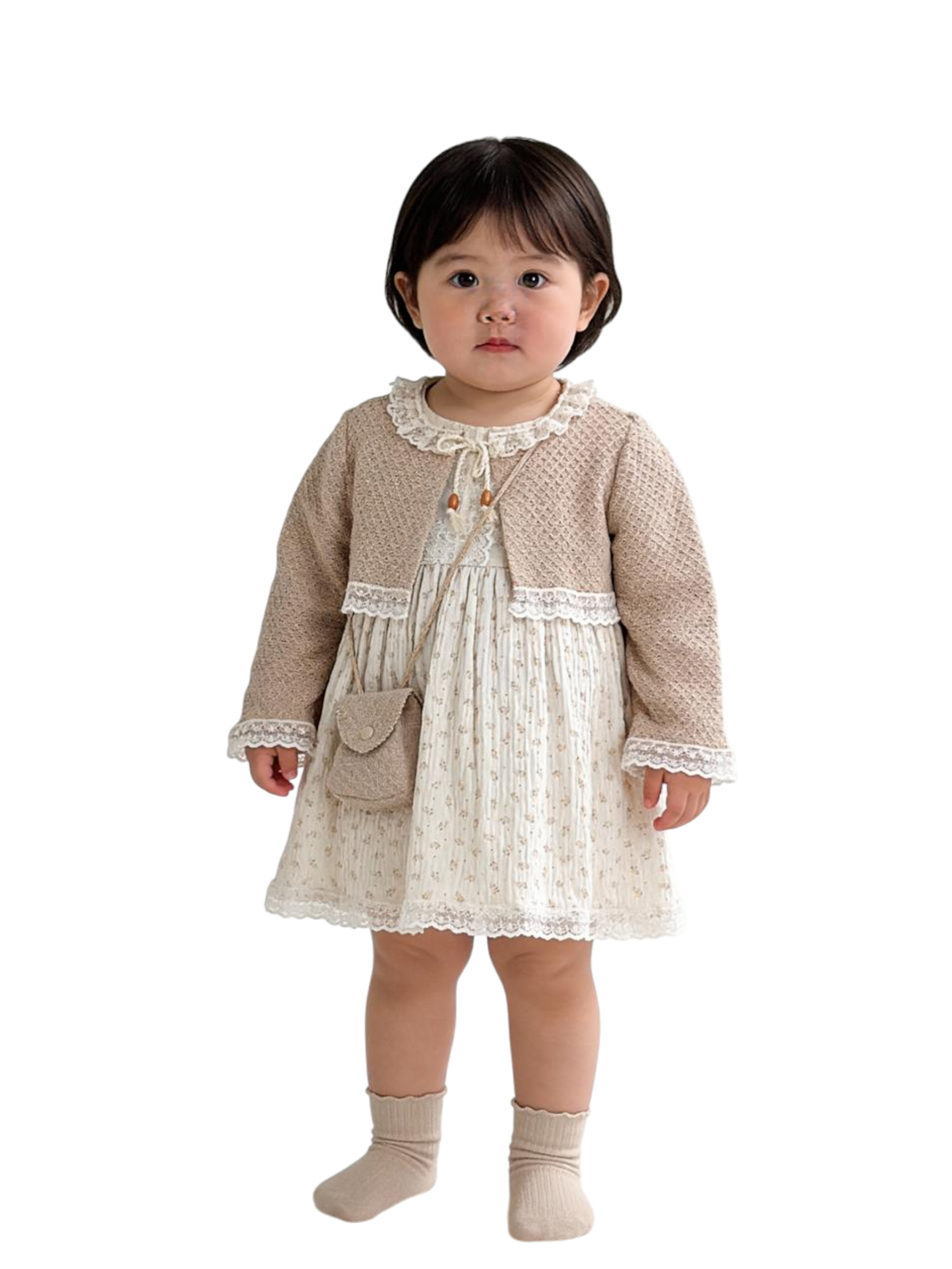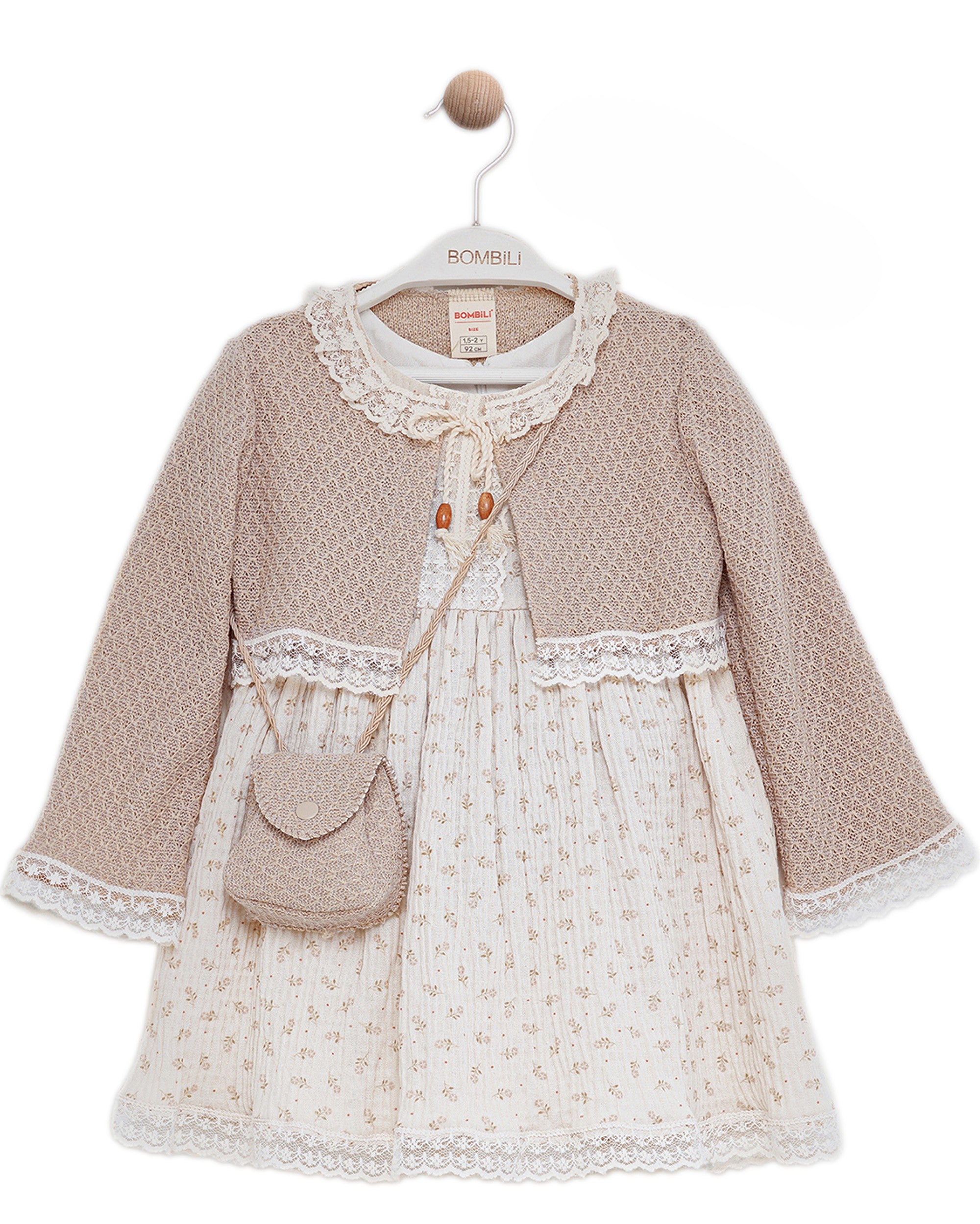 DRESS:%100 cotton jacket: %55 pes %45 cotton3-piece set (drees,jacket,bag)Made in Turkey.