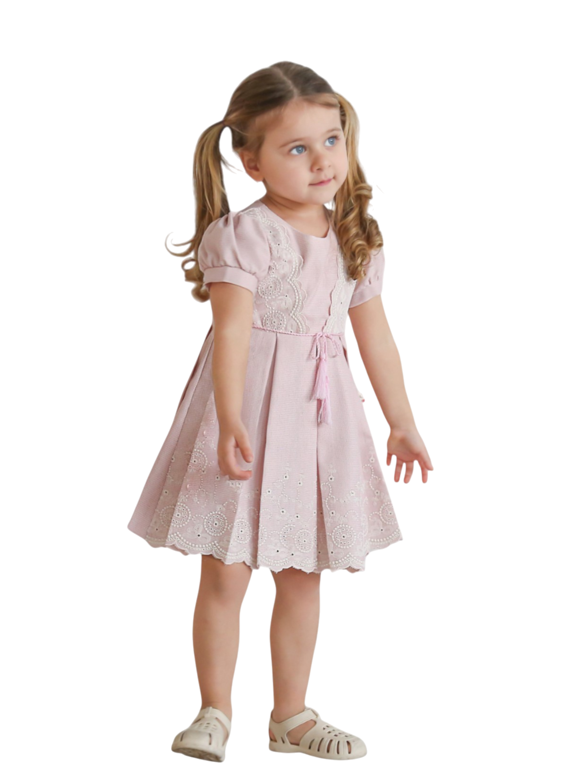 فستان جيا الأنيق المطرز - وردي - 2 سنة تم طلبه مسبقًا وسيتم شحنه بمجرد عودته إلى المخزون.