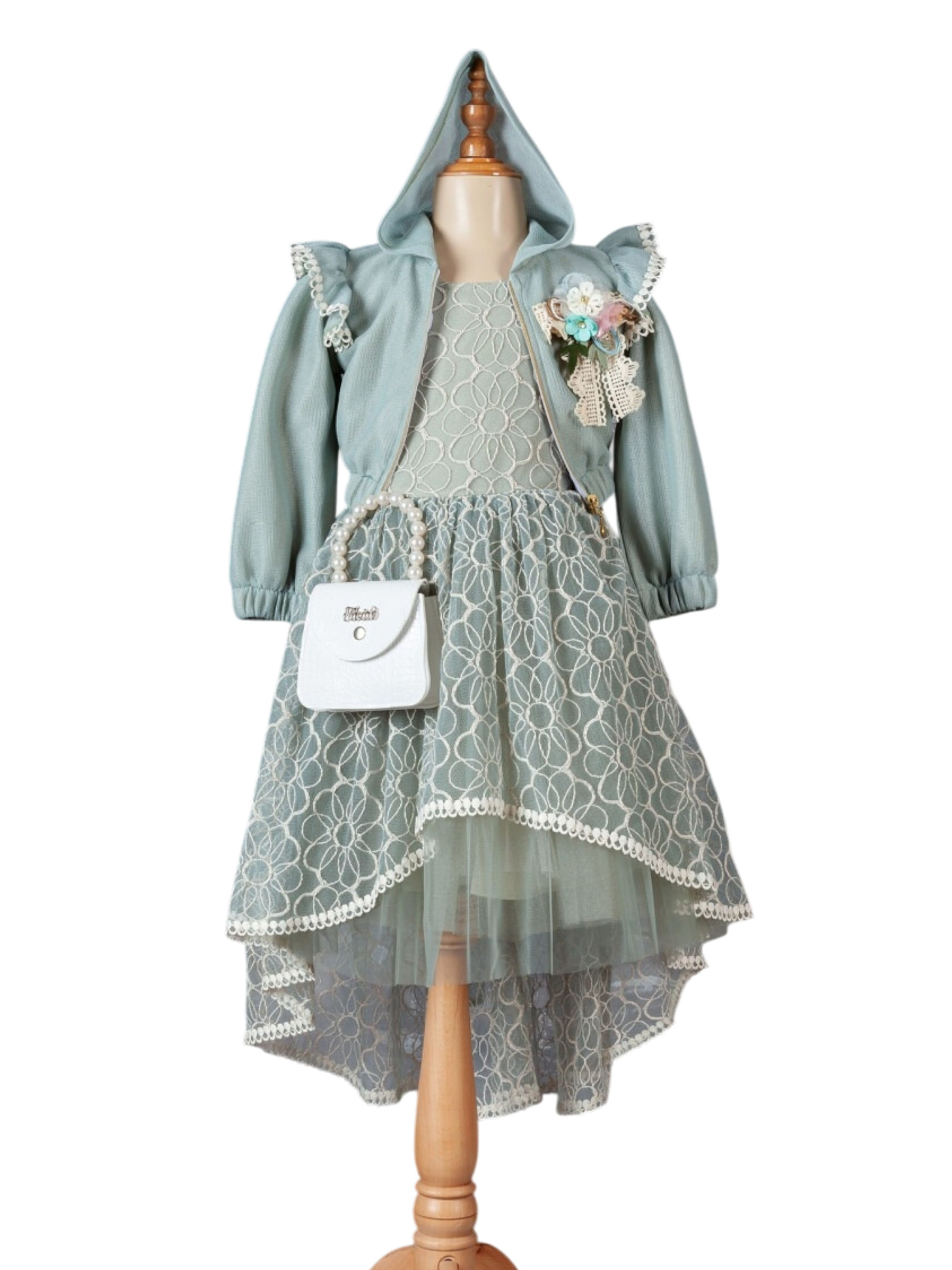 فستان جولريس عالي ومنخفض مع بوليرو - نعناعي - 6-7 سنوات تم طلبه مسبقًا وسيتم شحنه بمجرد عودته إلى المخزون.