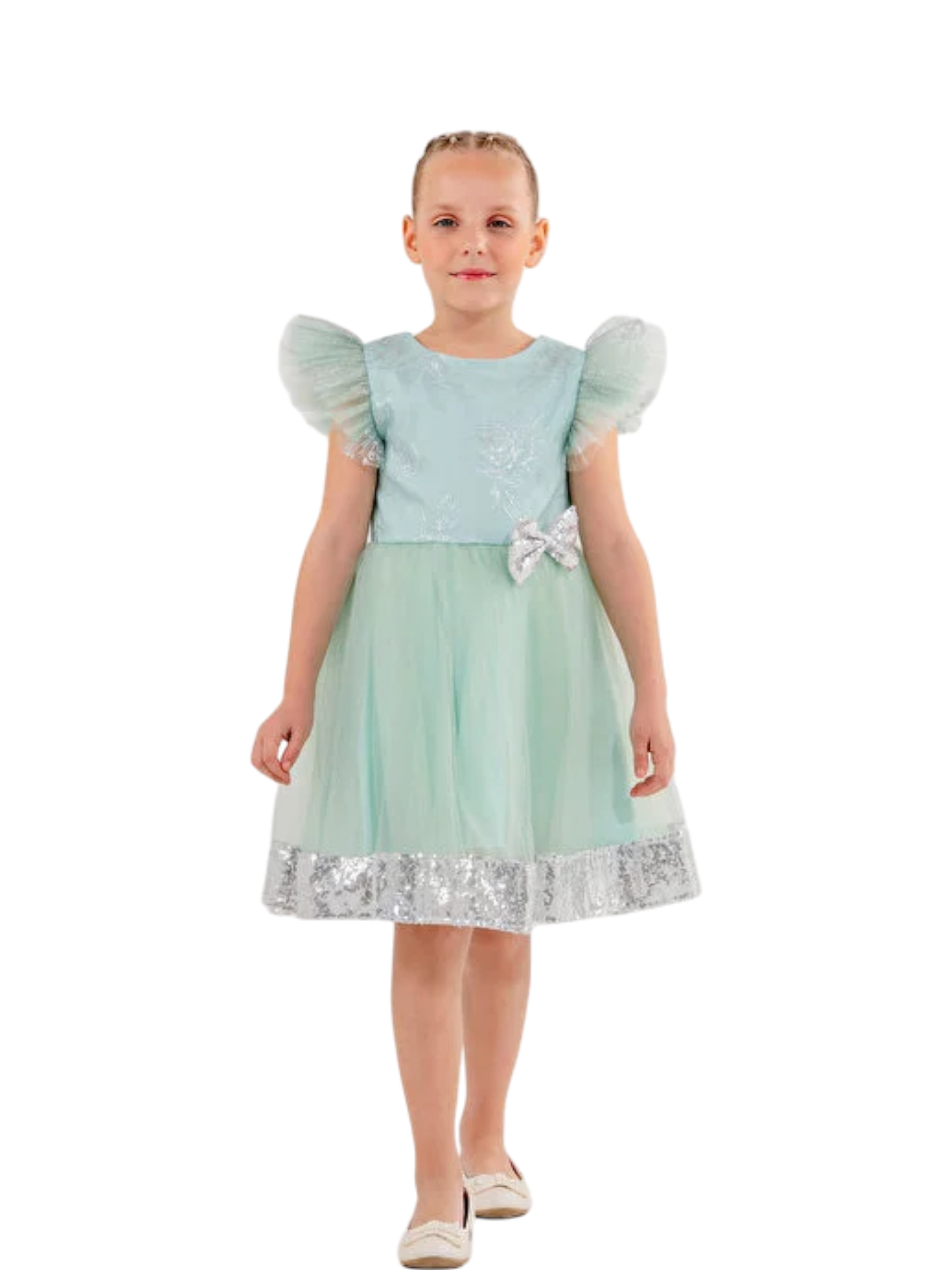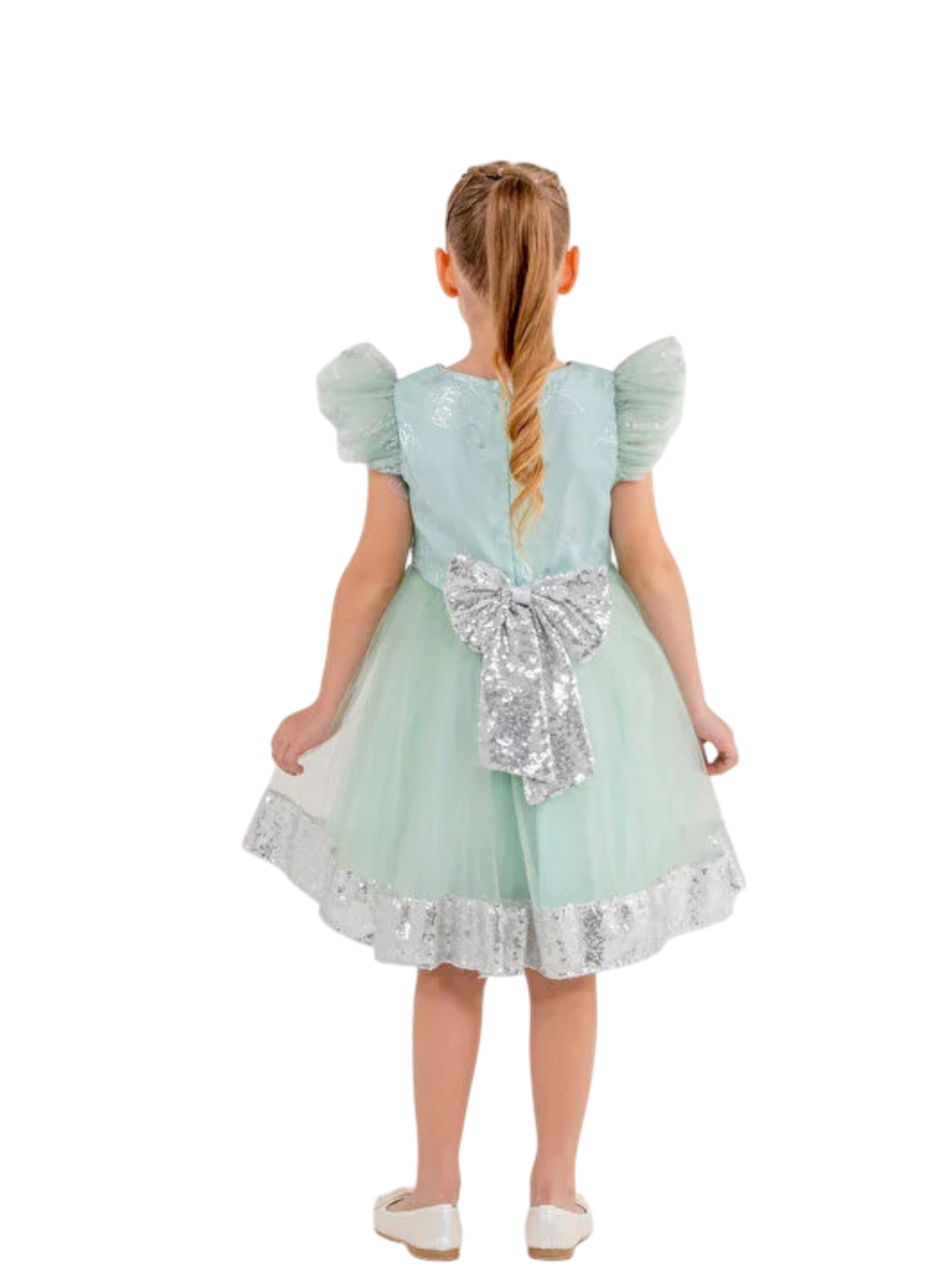 فستان إيراز الفضي المزين بالترتر - لون النعناع - 4 سنوات تم طلبه مسبقًا وسيتم شحنه بمجرد عودته إلى المخزون.