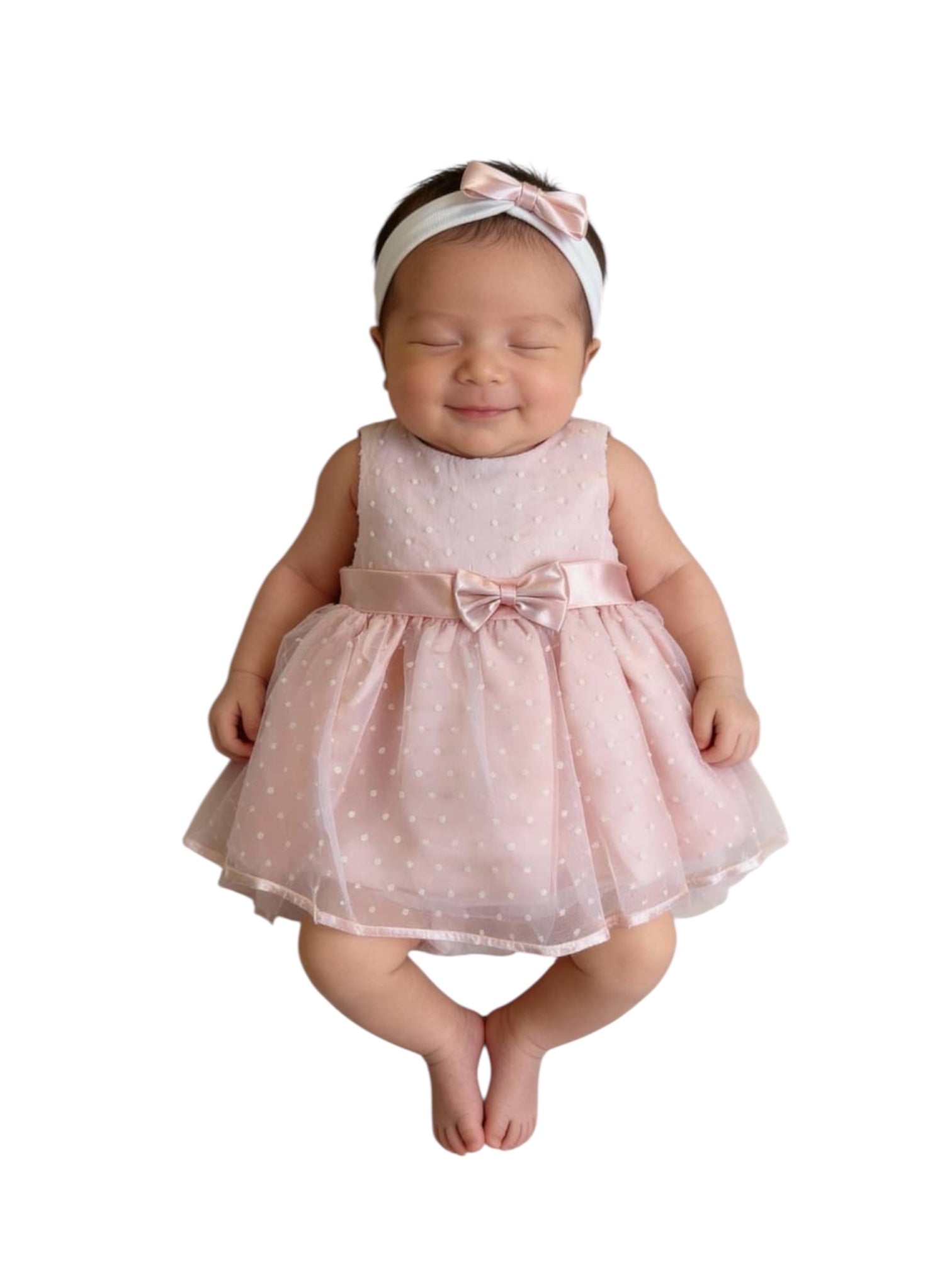 فستان ليلى تول مع رباط شعر - خوخي - 0-3 months تم طلبه مسبقًا وسيتم شحنه بمجرد عودته إلى المخزون.