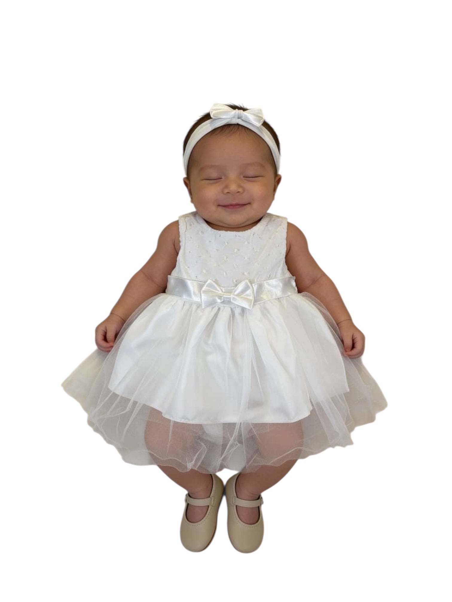 فستان ليلى تول مع رباط شعر - أبيض - 0-3 months تم طلبه مسبقًا وسيتم شحنه بمجرد عودته إلى المخزون.