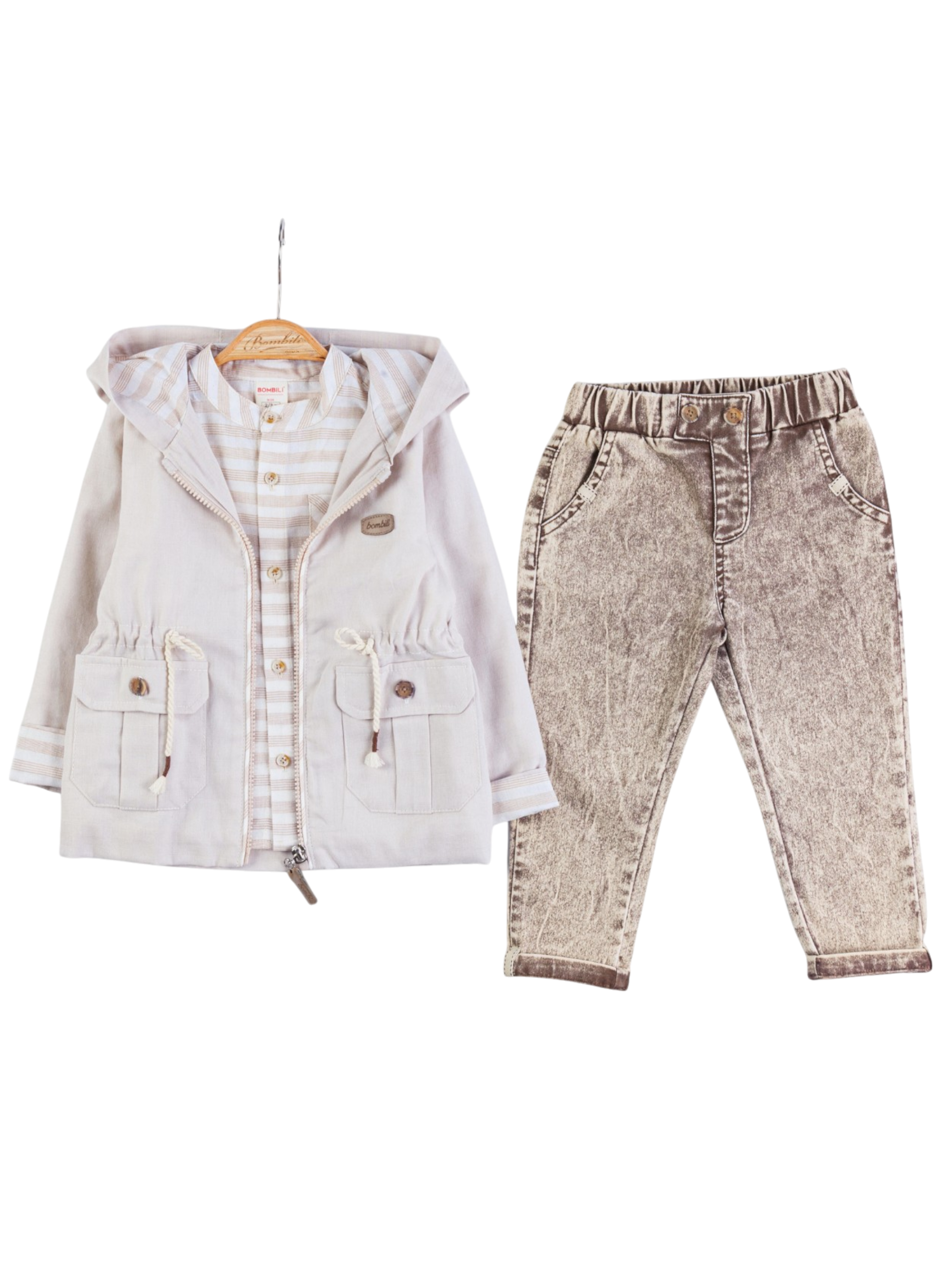 طقم ماي بوي باللون البيج. صنع في تركيا. بنطلون بولي قطن، الباقي 100% قطن