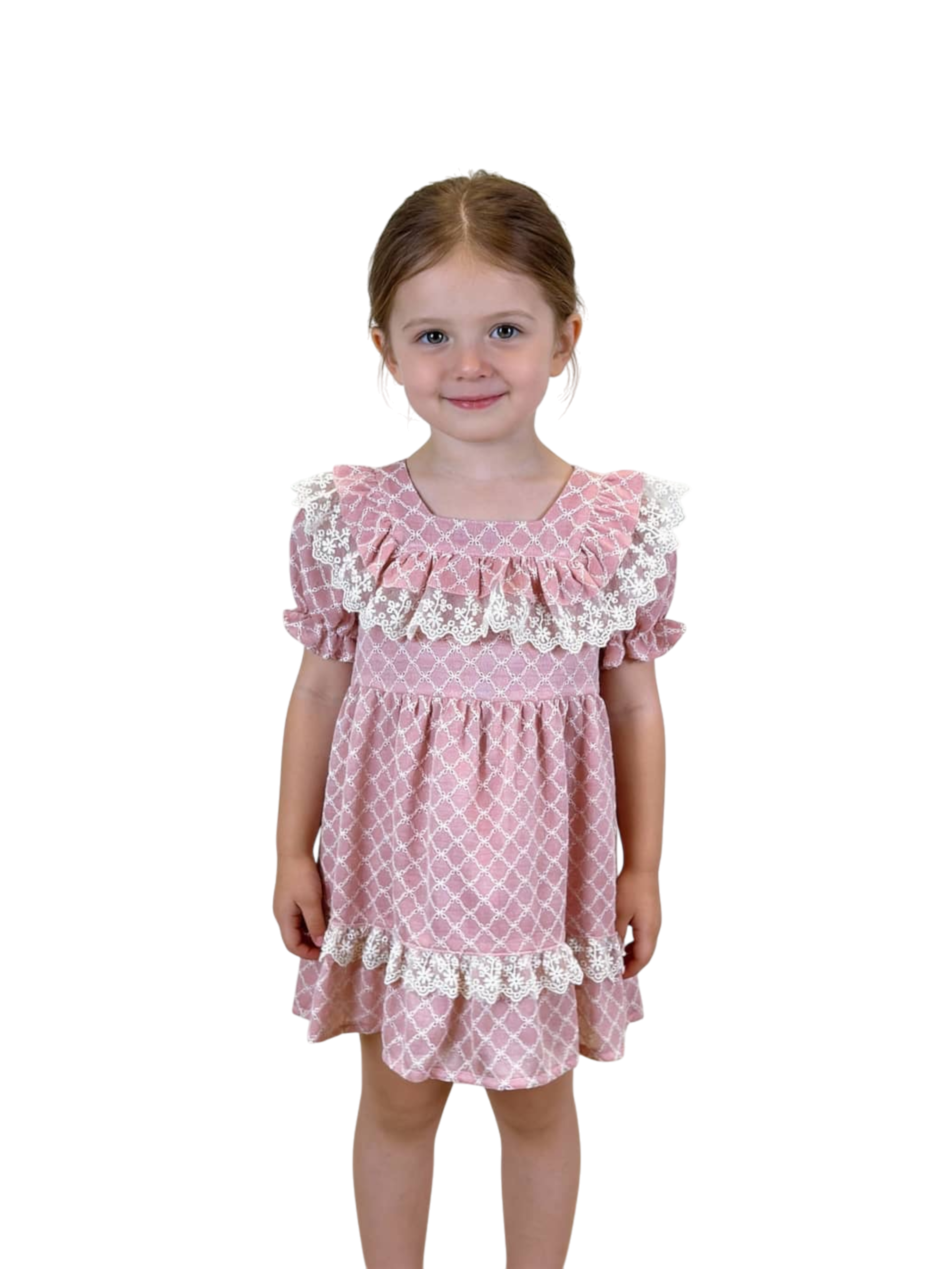 فستان وردي على شكل قرص العسل - 9M تم طلبه مسبقًا وسيتم شحنه بمجرد عودته إلى المخزون.