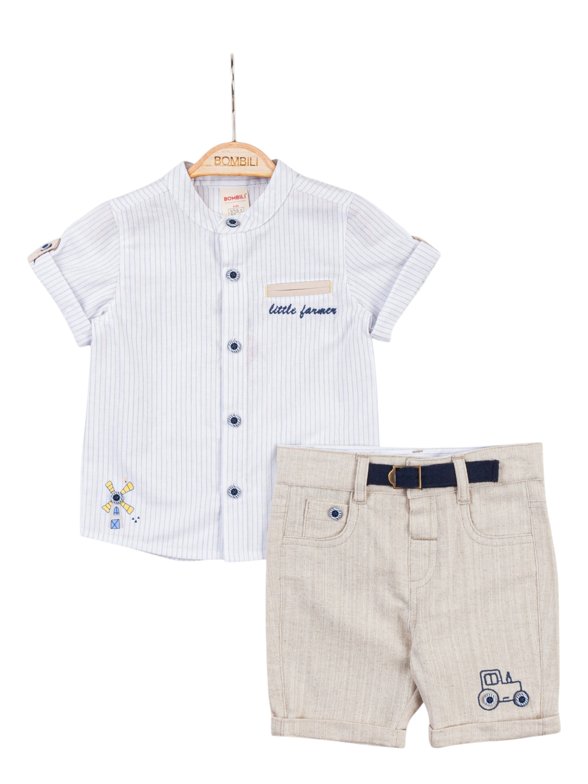 الخامة (القميص): 98% قطن، 2% فيسكوز الخامة (شورت كابري): 90% قطن، 10% كتان النوع: طقم من قطعتين (قميص نصف كم + شورت) الملاءمة: مريحة، ملائمة غير رسمية الأكمام: نصف كم (للقميص) المناسبة: ارتداء يومي / نزهات غير رسمية المنشأ: صنع في تركيا