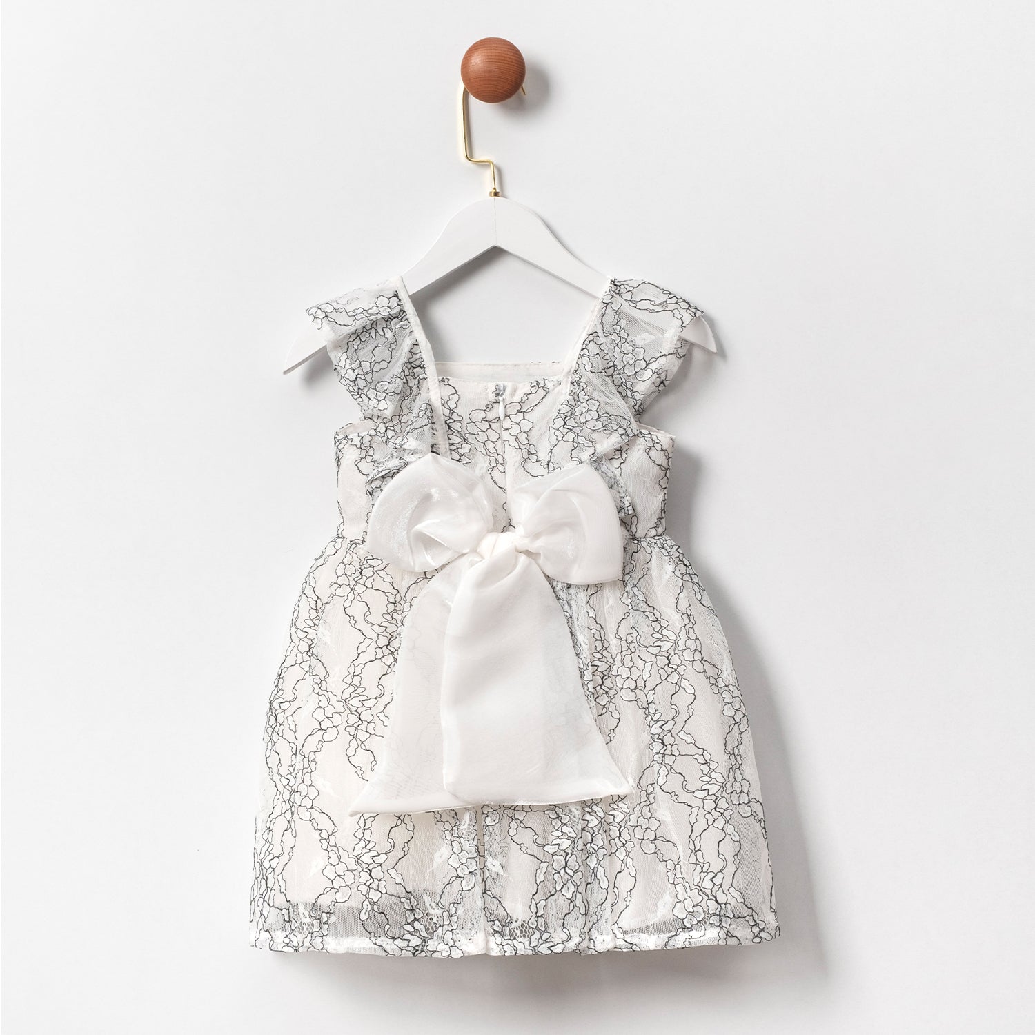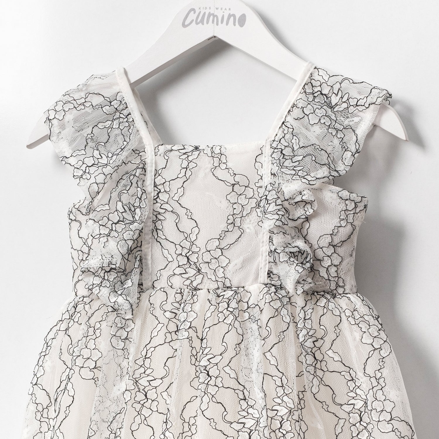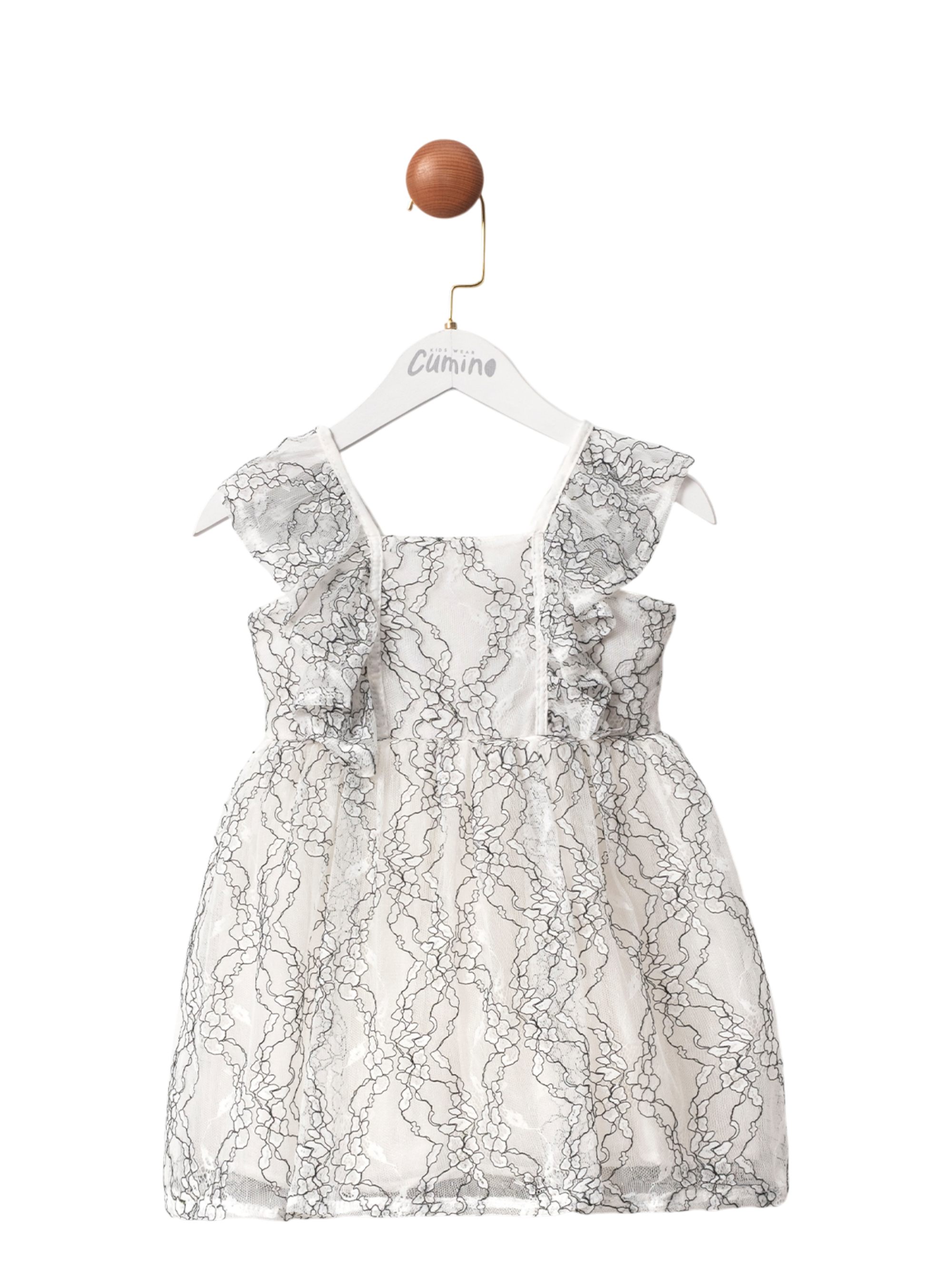 Featuring black contoured lace overlays and elegant ruffled straps, this dress is crafted from a premium blend of 50% Cotton and 50% Polyester. It includes a skin-friendly, soft inner lining to ensure your child's comfort. Made in Turkey.