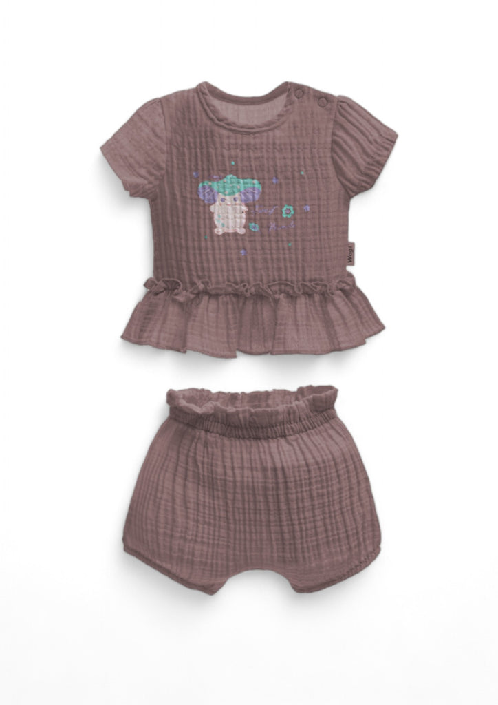 MUSSI BABY GIRL ESSENTIAL FRILL SET - BROWN