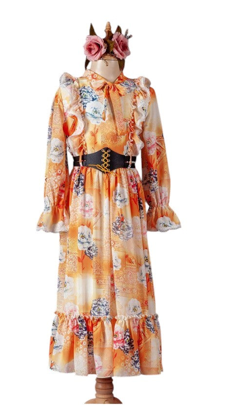 YAZ CHIFFON DRESS AND BOLERO SET - ORANGE