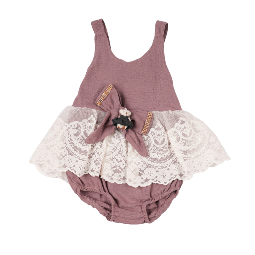INCI LACE DETAILED FENCY ROMPER - PEACH