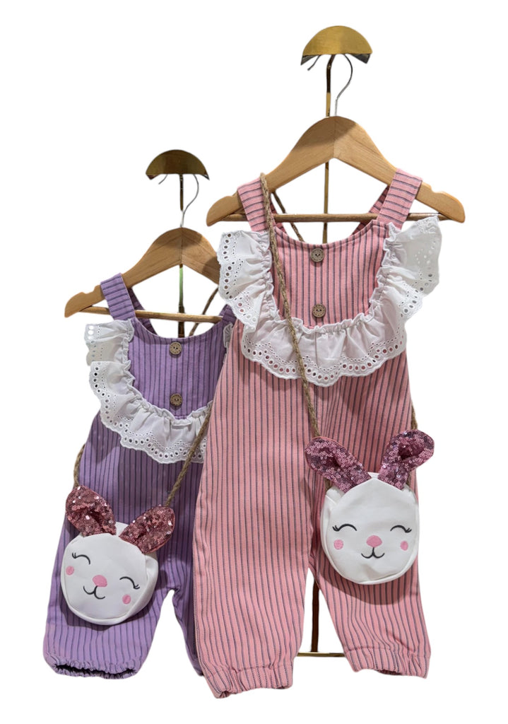 BUNNY GABARDINE JUMPSUIT WITH BAG - PINK