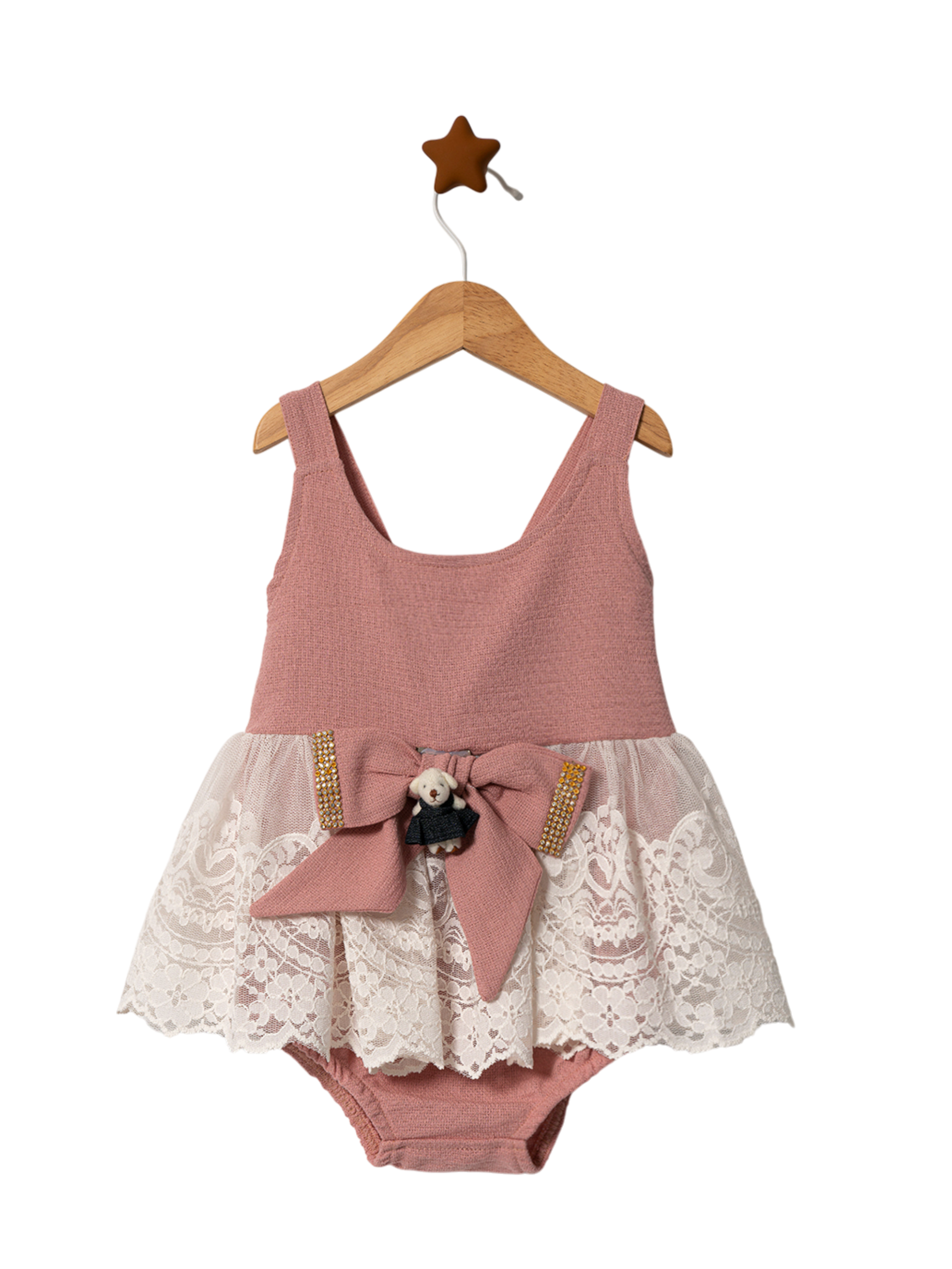 INCI LACE DETAILED FENCY ROMPER - PEACH - 9/12M is backordered and will ship as soon as it is back in stock.