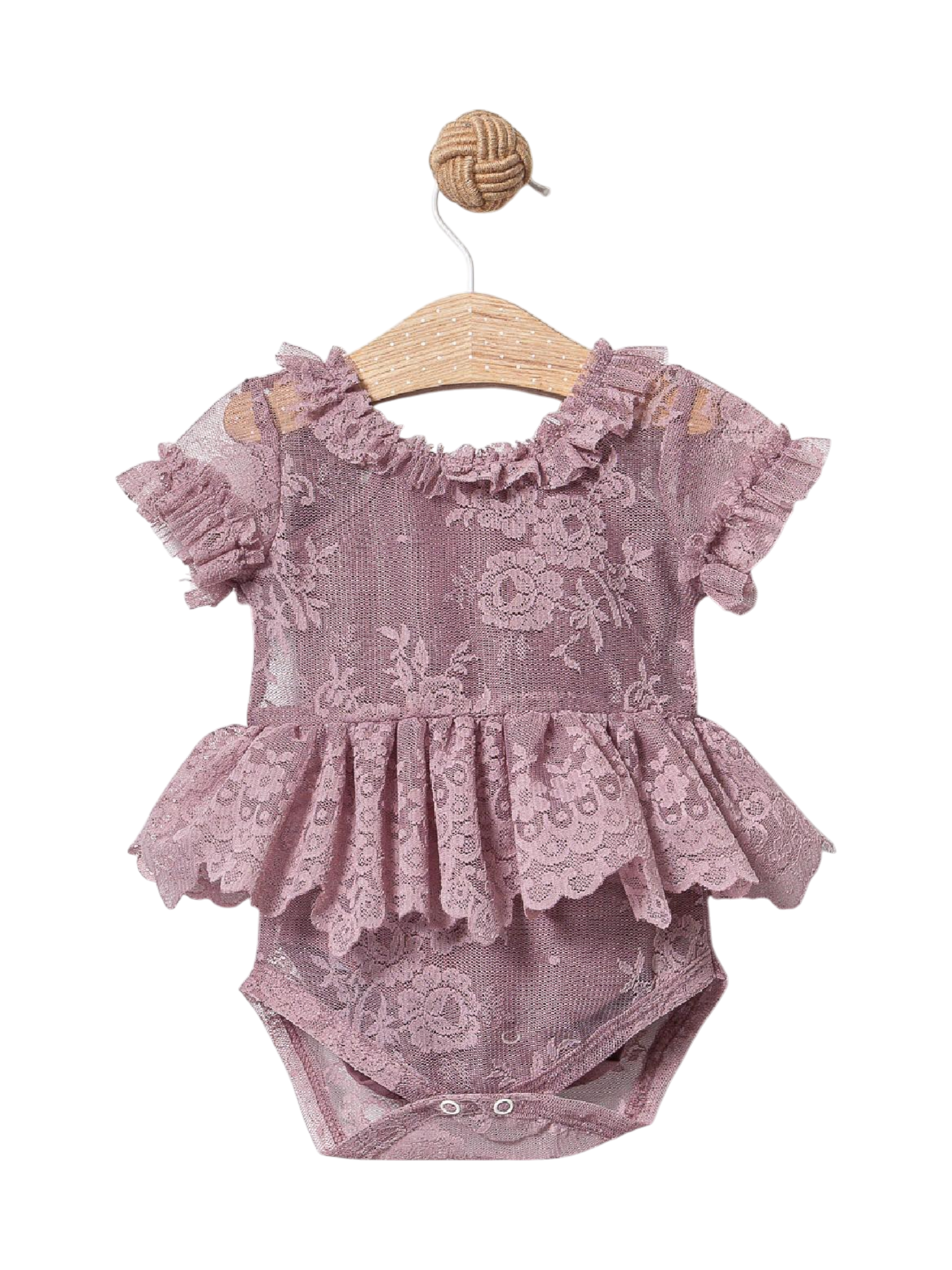 LILIA LACE FENCY ROMPER - LILAC - 9/12M is backordered and will ship as soon as it is back in stock.