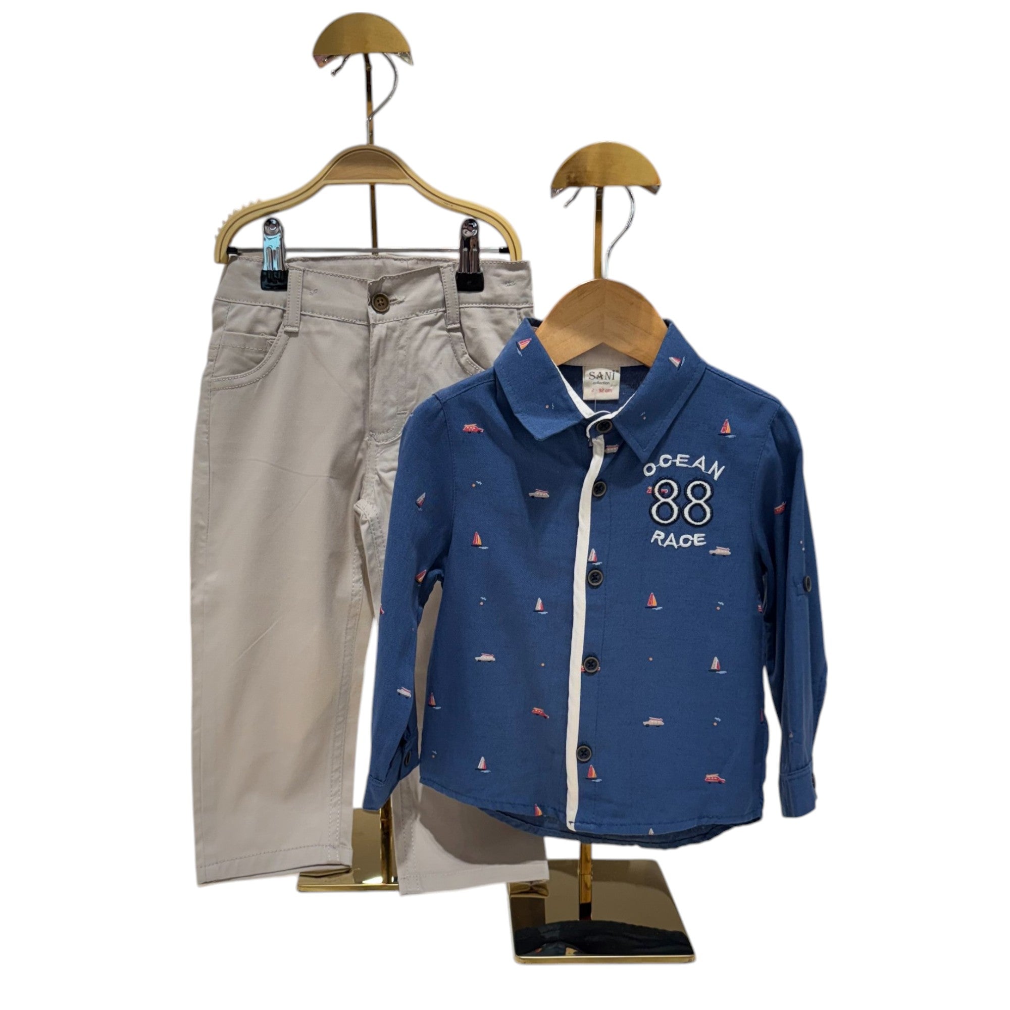 DORUK SHIRT WITH GABARDINE PANTS - NAVY - 2Y is backordered and will ship as soon as it is back in stock.