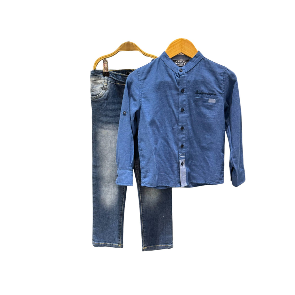 GERO POLO AND DENIM SHORT SET - YELLOW