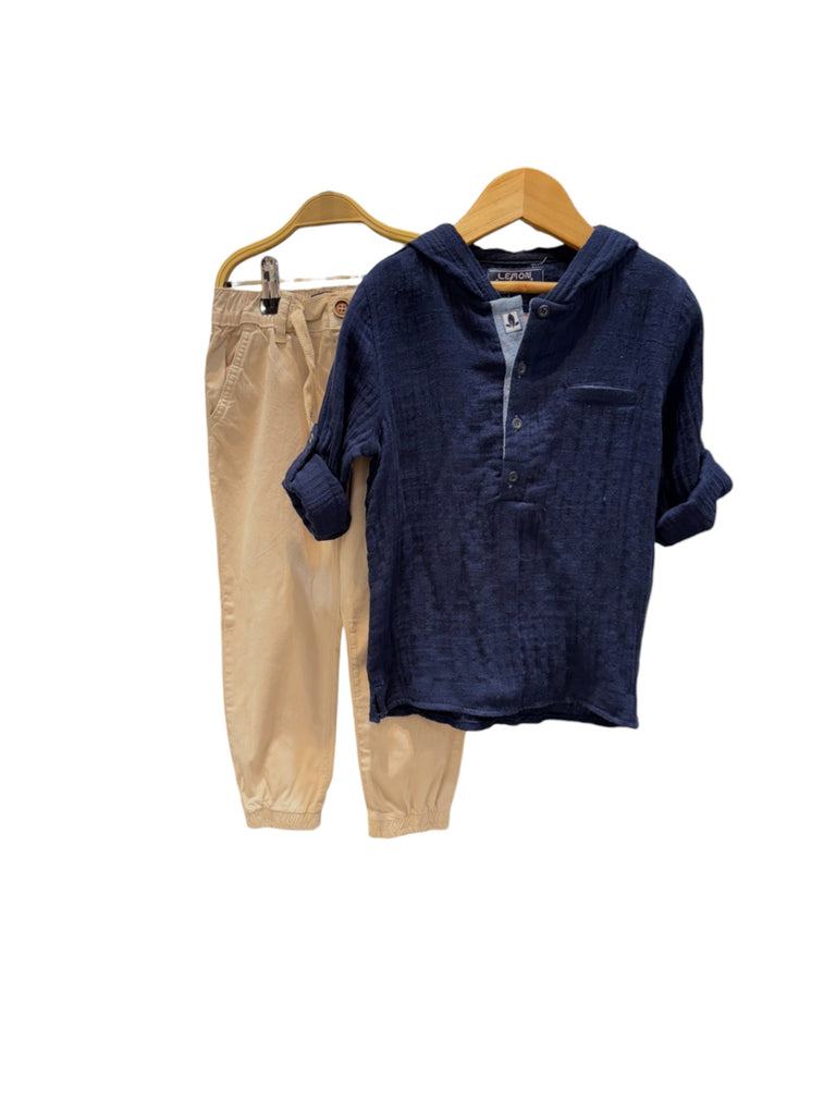 ETTO LINEN HOODY SENIOR'S SET - NAVY