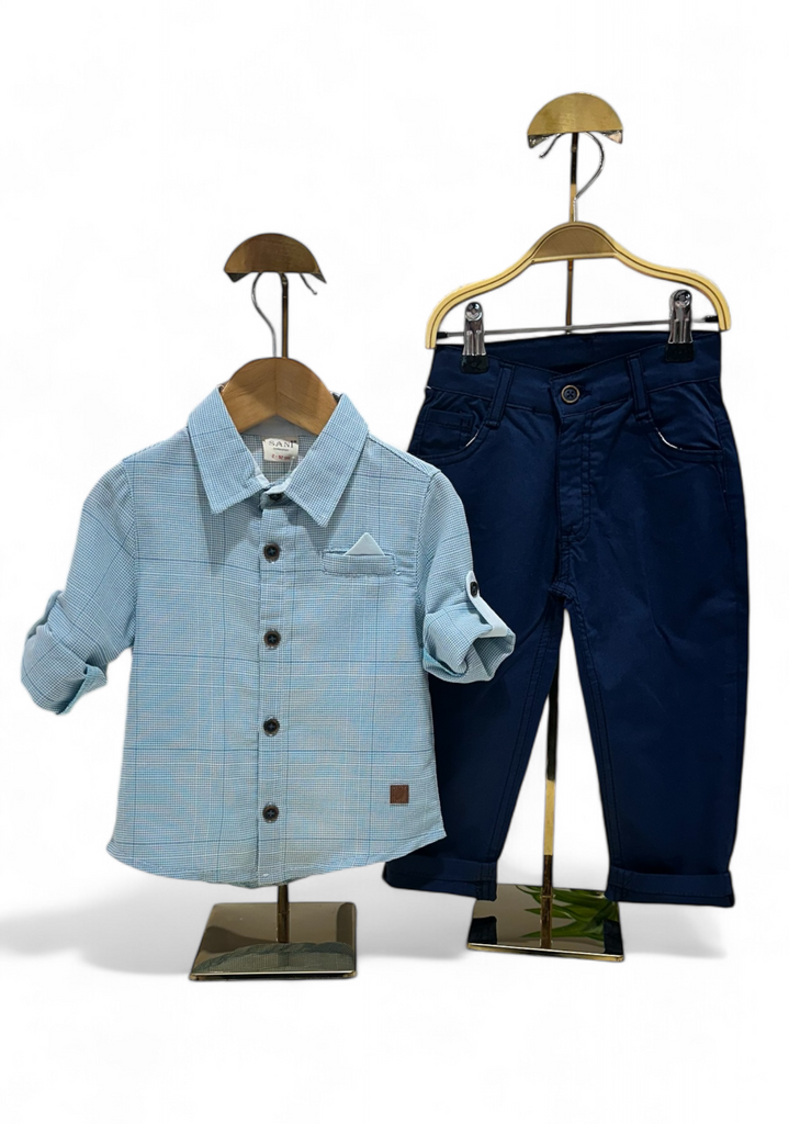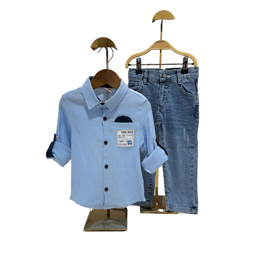 CELIO COTTON SHIRT AND DENIM SET - LIGHT BLUE