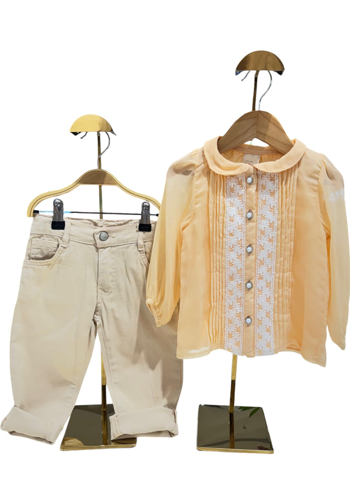 AIDA CHIFFON BLOUSE AND PANTS SET - BEIGE