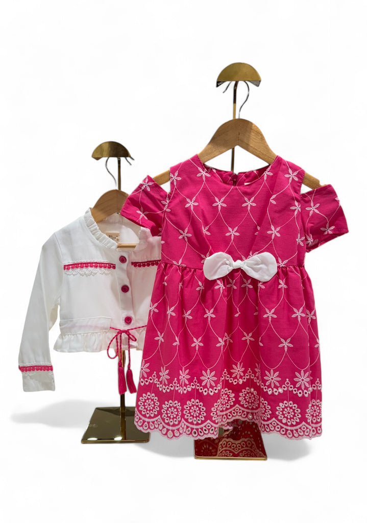 MEYRA EMBROIDERY DRESS AND JACKET - FUSCHIA