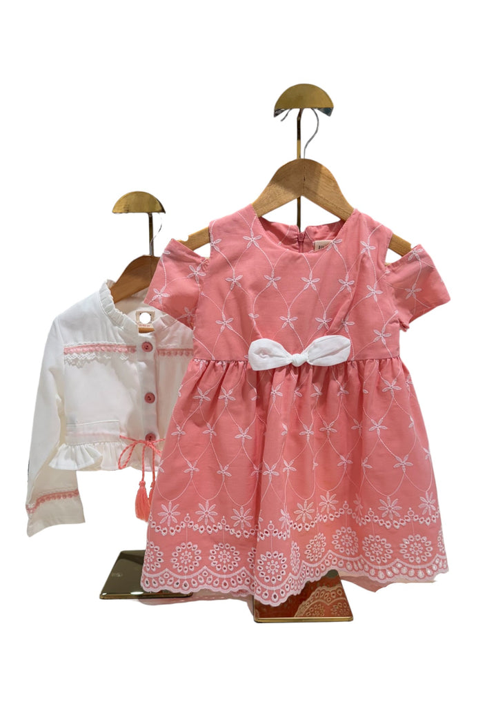 MEYRA EMBROIDERY DRESS AND JACKET - PEACH