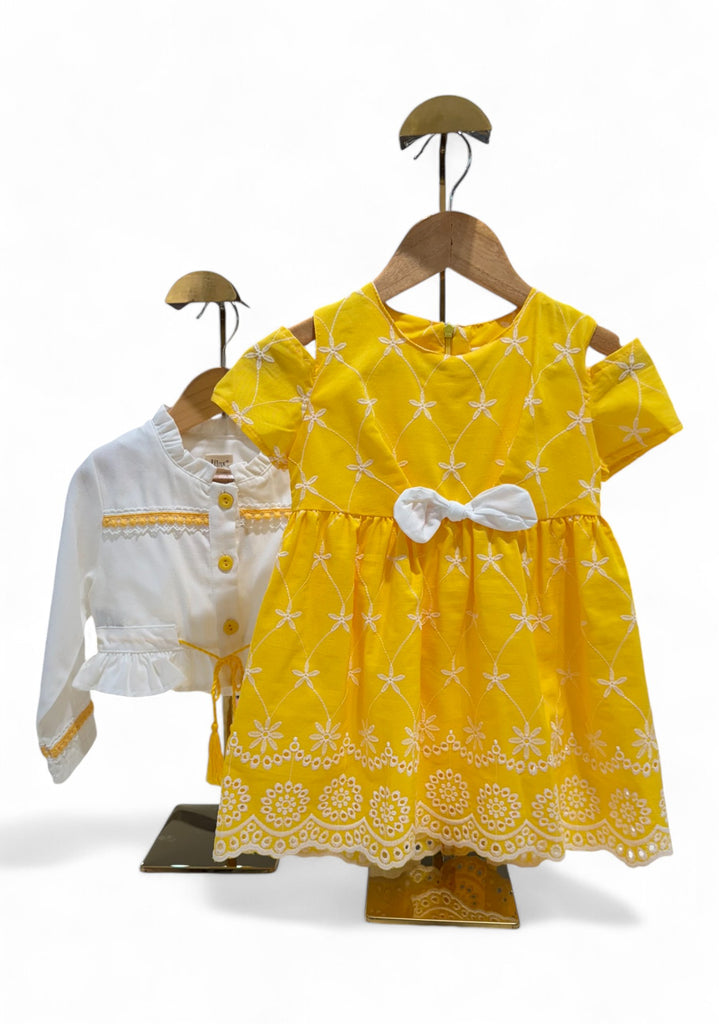 MEYRA EMBROIDERY DRESS AND JACKET - YELLOW