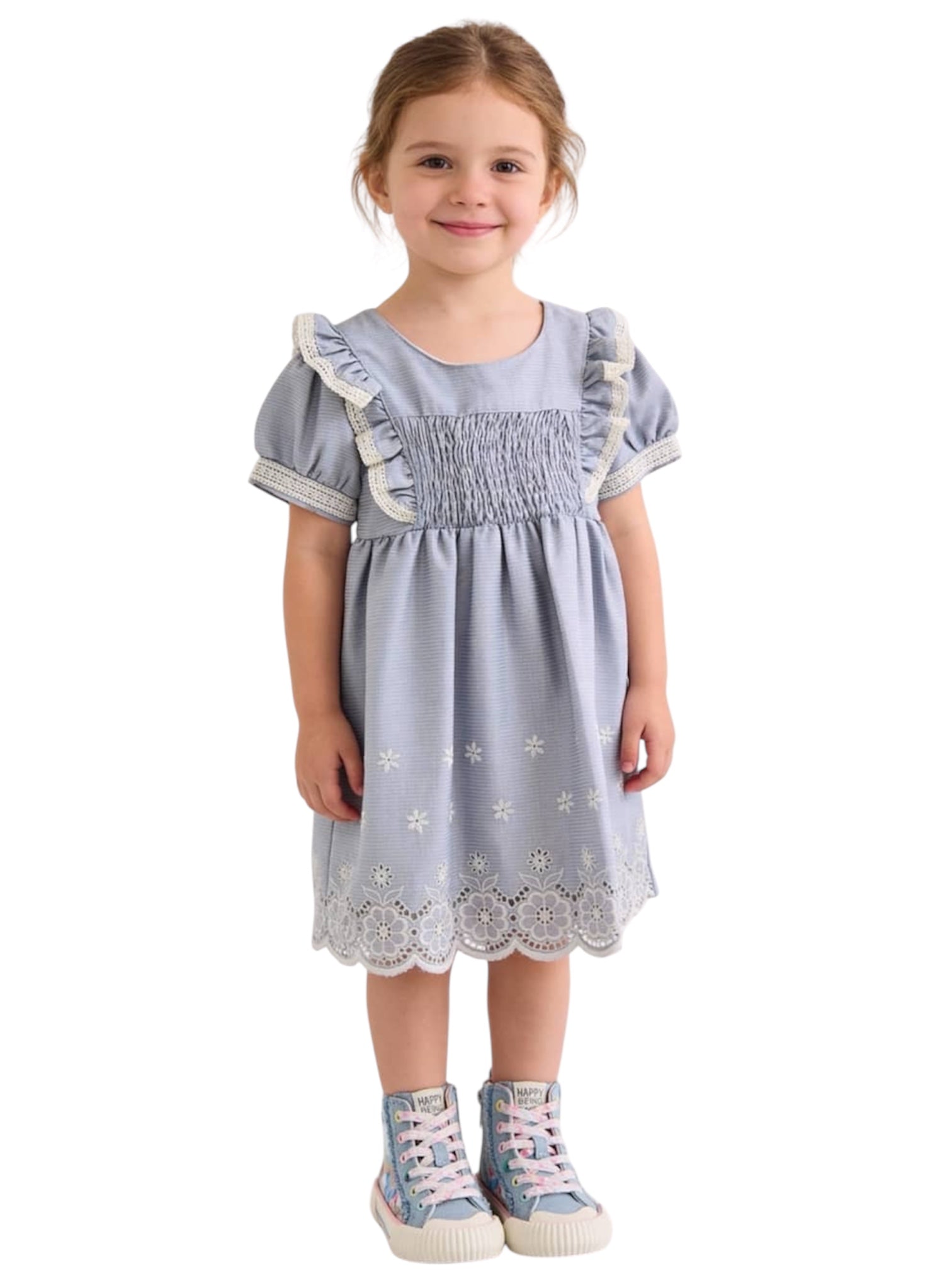 GULIN ELEGANT EMBROIDERY DRESS - BLUE - 3Y is backordered and will ship as soon as it is back in stock.