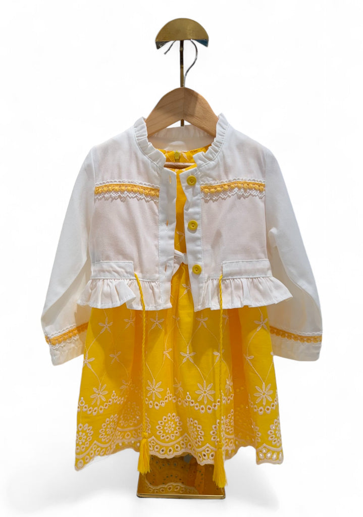 MEYRA EMBROIDERY DRESS AND JACKET - YELLOW