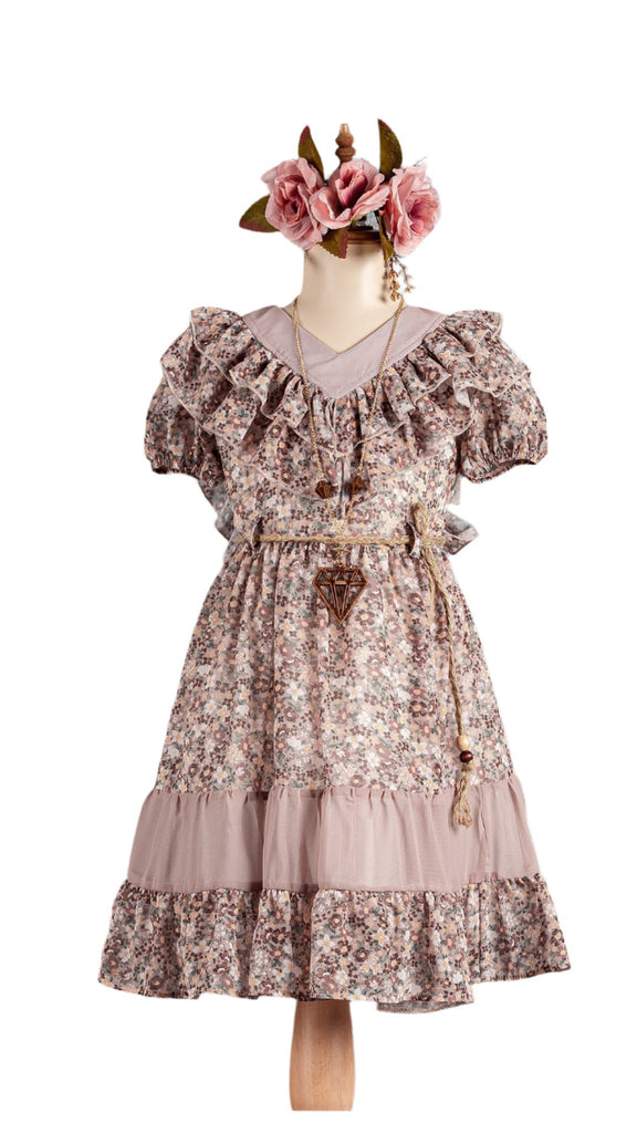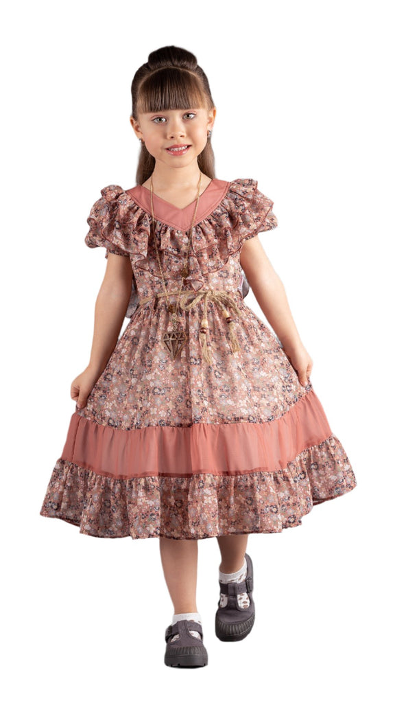 TULIN RUFFLED CHIFFON DRESS - BROWN
