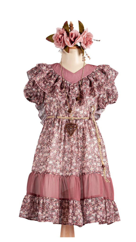TULIN RUFFLED CHIFFON DRESS - PINK