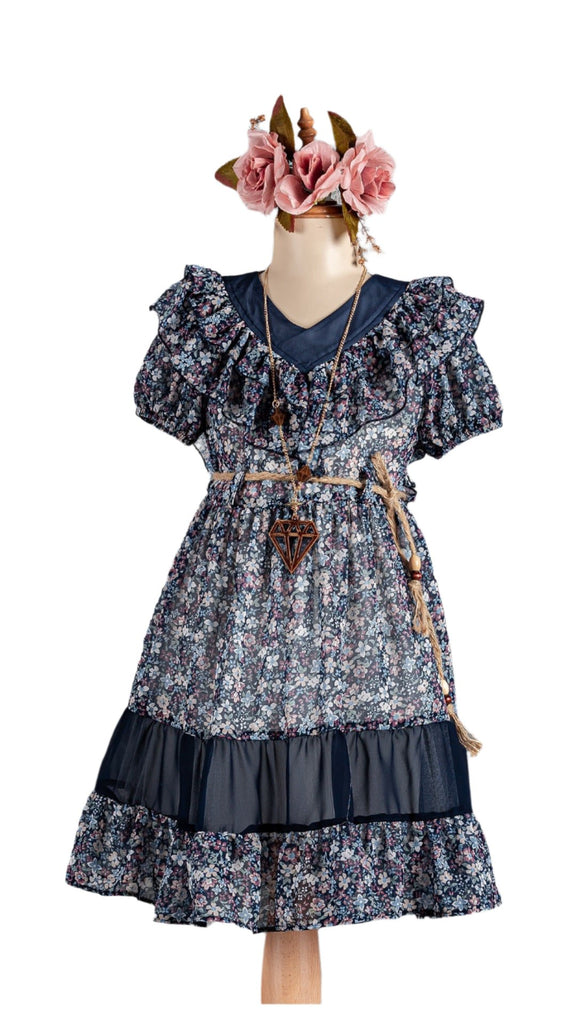 TULIN RUFFLED CHIFFON DRESS - NAVY