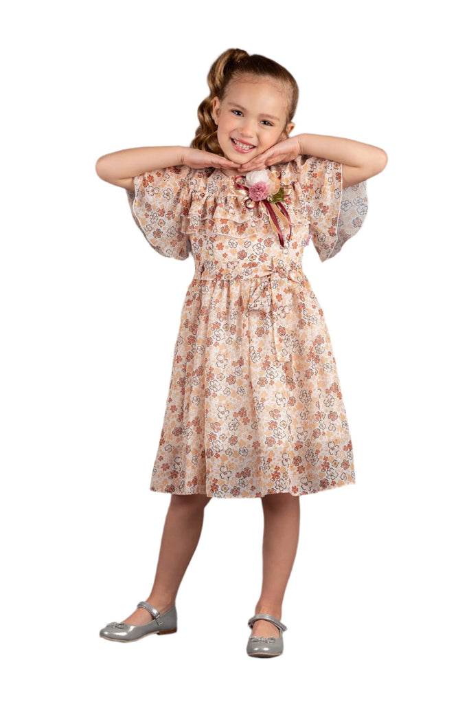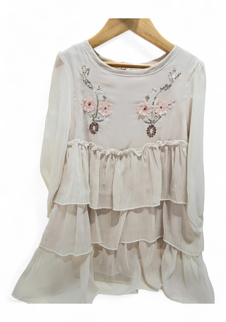 TANEM CHIFFON DRESS WITH RUFFLES - BEIGE