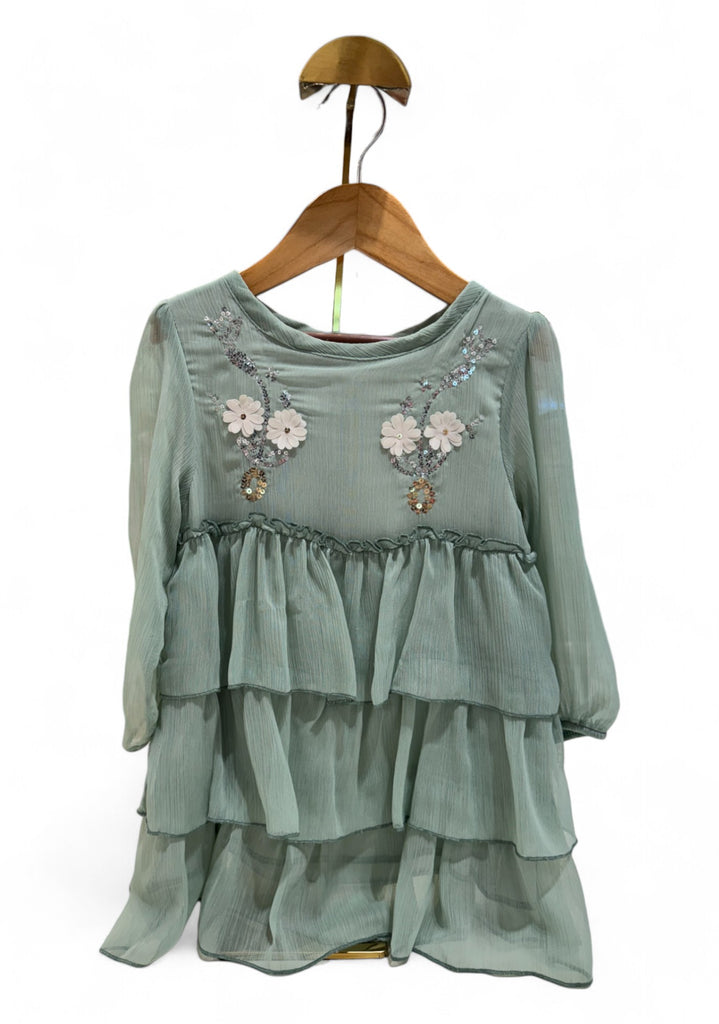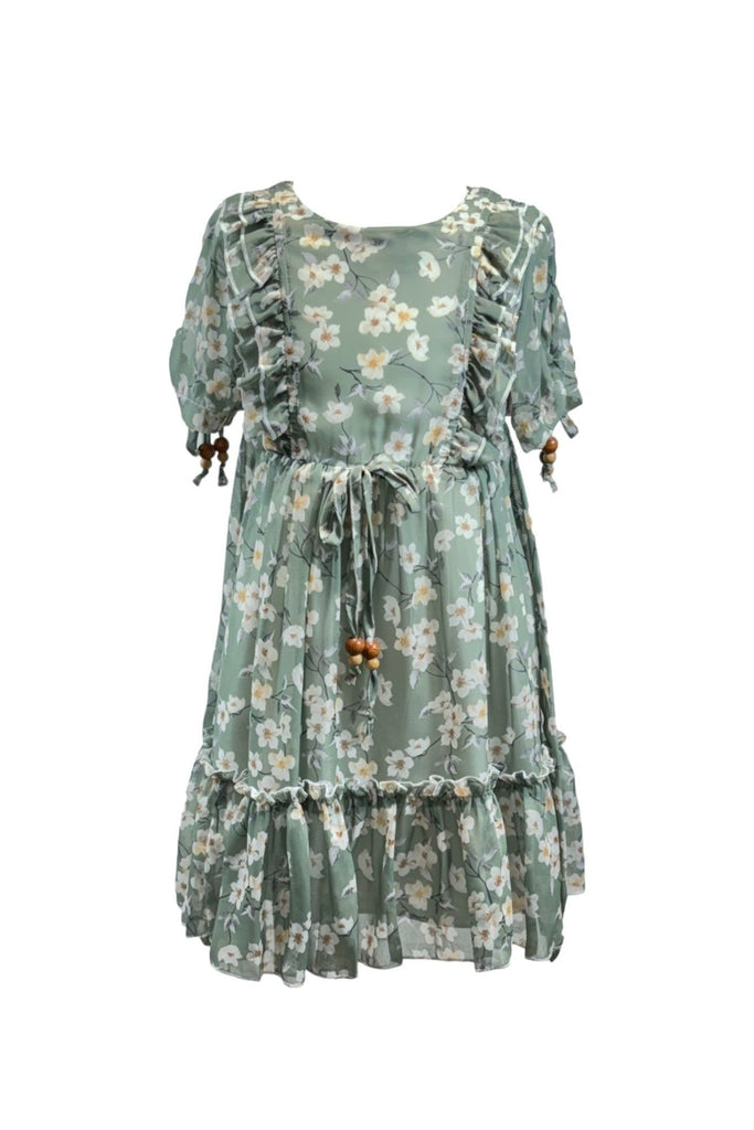 TANEM CHIFFON DRESS WITH RUFFLES - GREEN