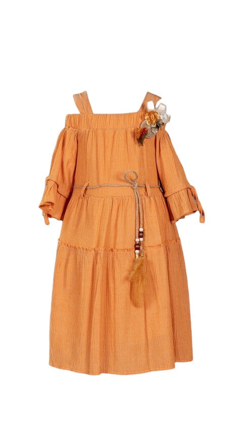 TANEM CHIFFON DRESS WITH RUFFLES - YELLOW