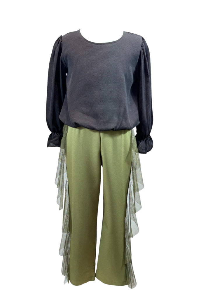 UMAY FRINGE PANT AND BLOUSE SET - KHAKI