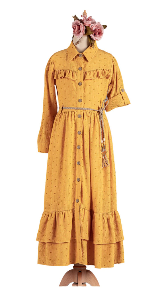 SEVIL MAXI SOLID DRESS - MUSTARD